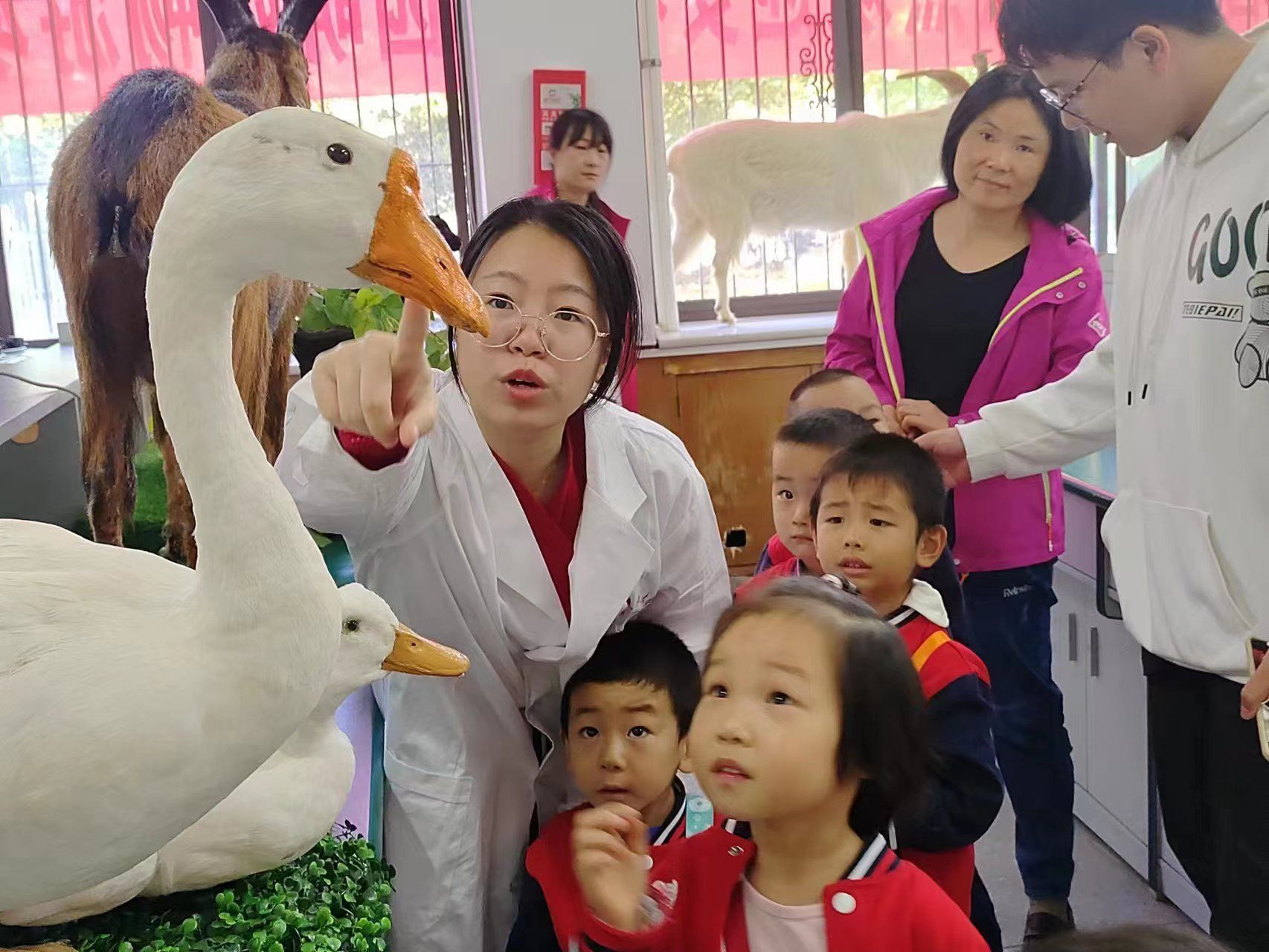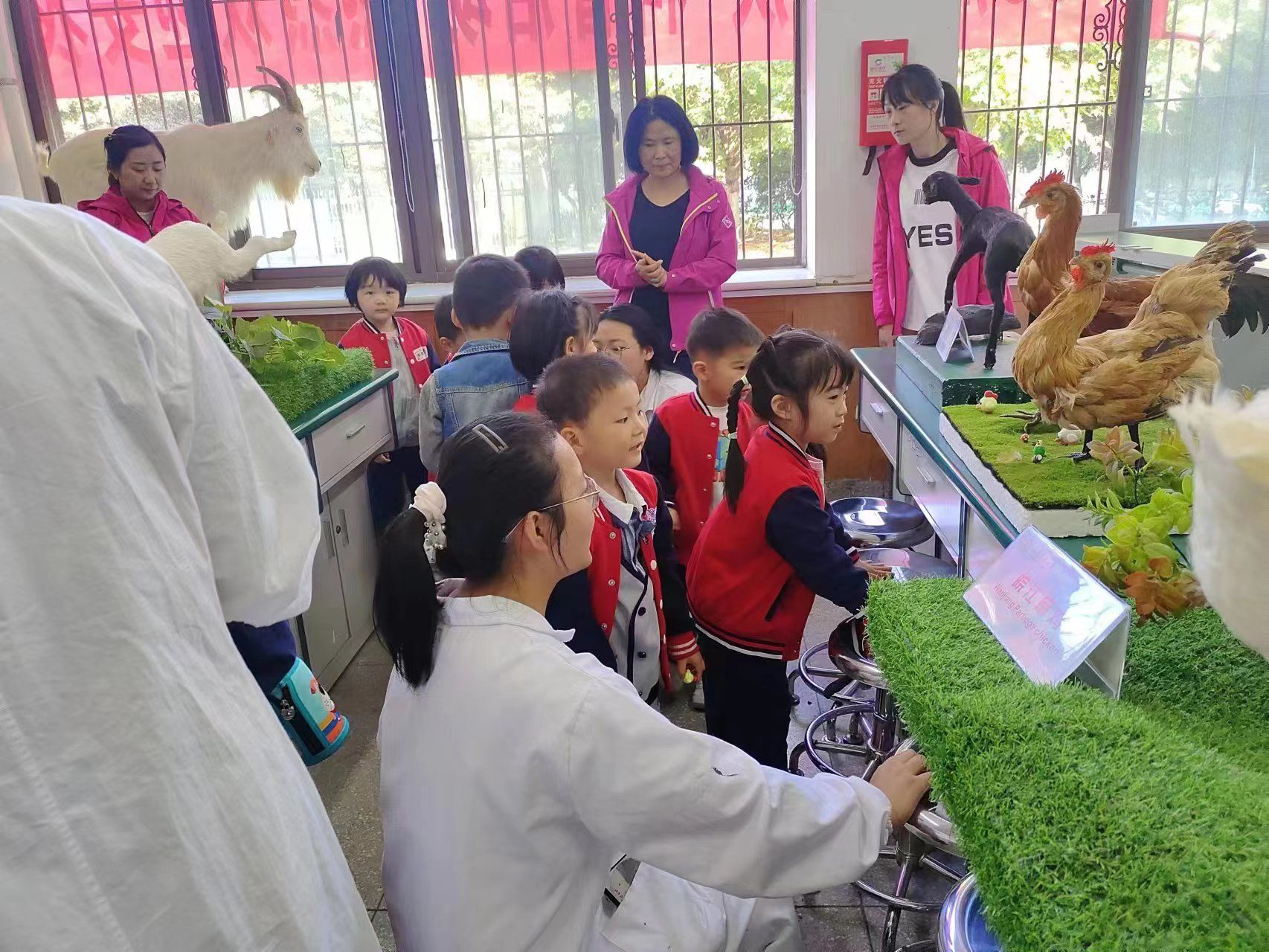yl1111永利集团幼儿园的小朋友们在老师的带领下体验了一节别开生面的动物科普课堂。学院精心布置了由师生制作的禽动物模型,并给小朋友生动有趣地讲解了一堂有关动物品种、畜牧生产、科学研究等方面的科普课程,激发孩子们对畜牧业和科学研究的好奇心。孩子们对这次科普活动表现出极大的兴趣并纷纷举手发言,分别讲述了自己在生活中与动物之间的有趣故事,与学院的师生展开互动。