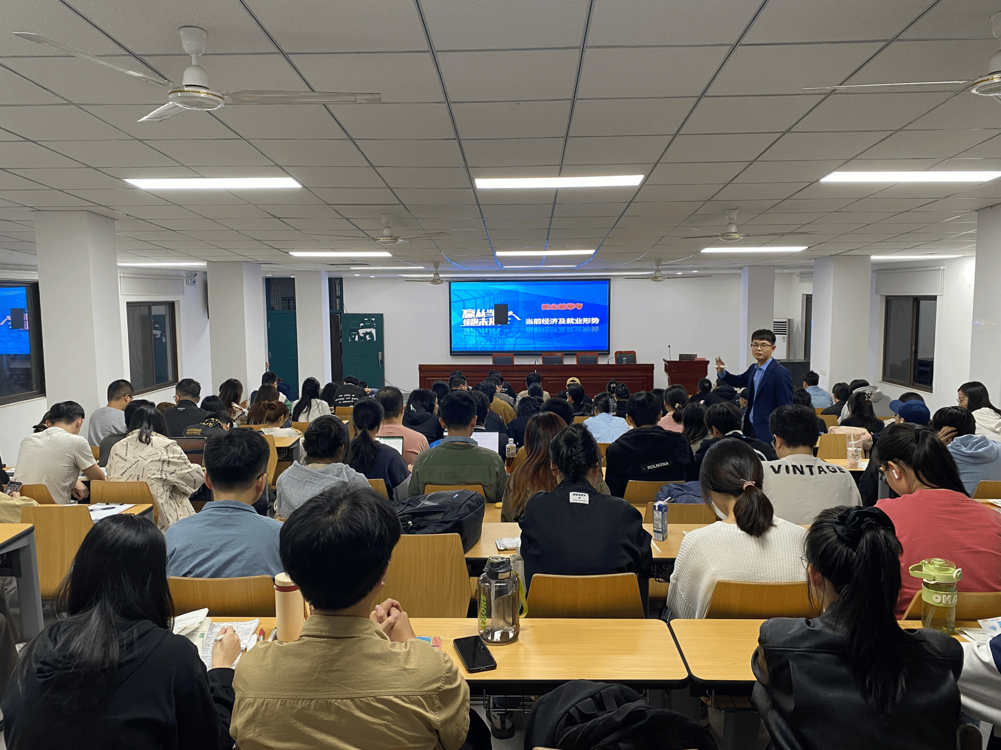 本网讯 为帮助毕业生树立正确的就业观和职业观,发挥专业优势,提升进入职场的竞争力。10月19日晚,学院邀请了双胞胎集团人力资源部长张元肖在动科楼318教室作《就业前思考--当前经济及就业形势》专题讲座,2020级毕业生参加了活动。