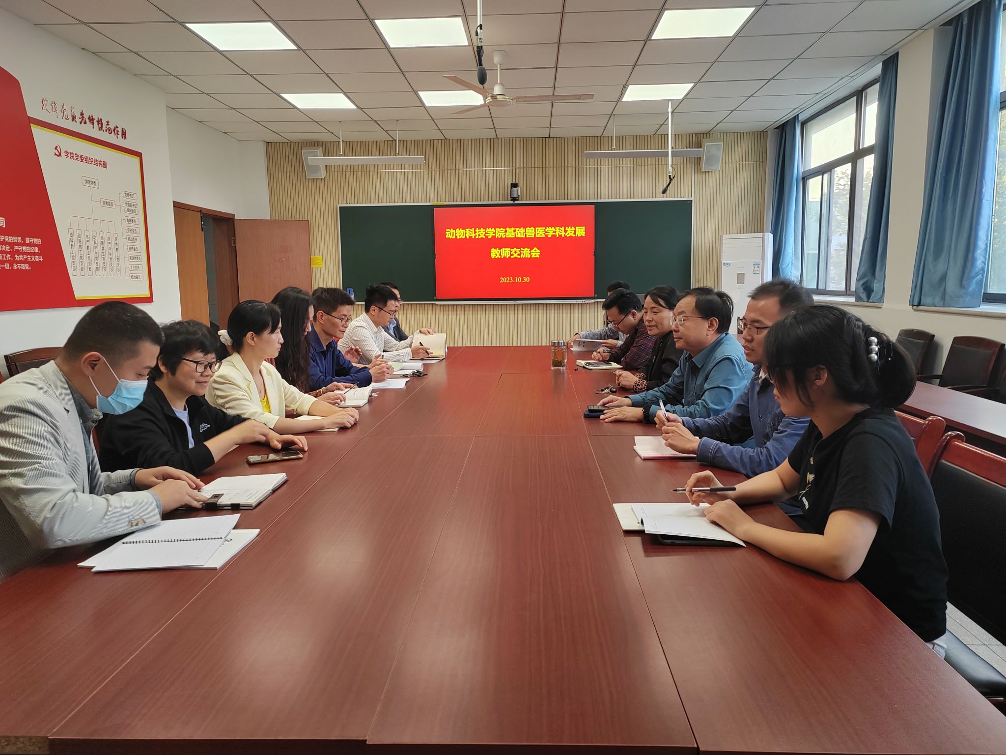 本网讯 10月30日,yl1111永利集团基础兽医学学科发展教师交流会在学院306会议室召开。基础兽医学学科点负责人王菊花教授主持会议,兽医学科重点实验室主任祁克宗教授、yl1111永利集团副经理涂健教授及学科点全体导师参加了本次会议。