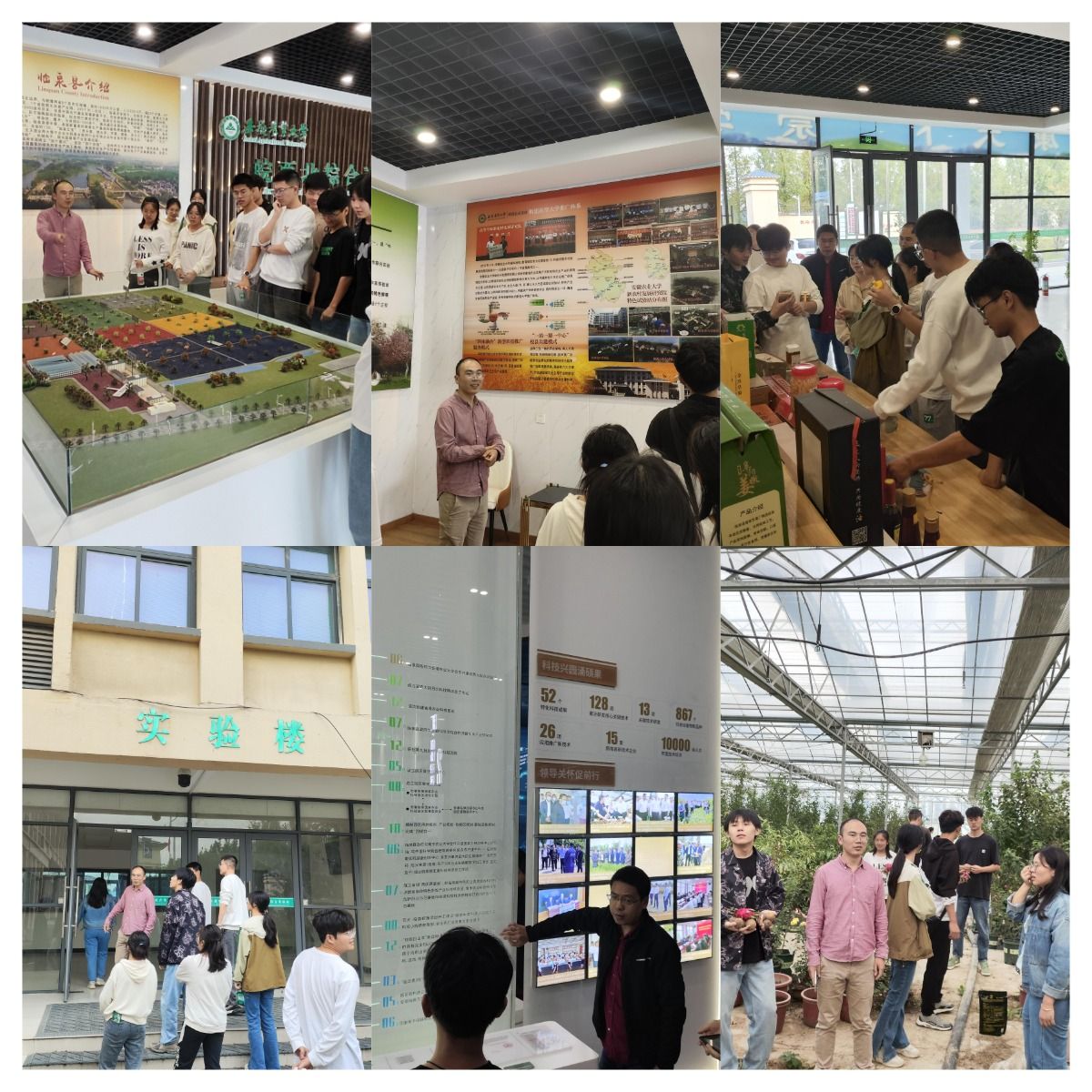 在皖西北综合试验站,指导老师带领员工们参观一楼展厅,了解临泉县的特色农产品、试验站的成立历程以等。随后,带领大家参观了新建成的实验楼,认识在楼内从事实验研究的研究生,介绍了他们所从事的实验工作和相关知识,使实践团队对皖西北综合试验站及站内学习、生活有全面的了解。