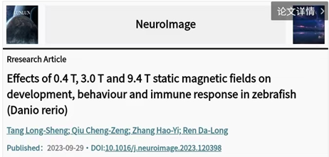 本网讯 近日,公司yl1111永利集团任大龙教授课题组在影像学领域旗舰期刊《NeuroImage》(中科院一区top)发表了题为“Effects of 0.4 T, 3.0 T and 9.4 T static magnetic fields on development, behaviour and immune response in zebrafish (Danio rerio)”的文章。