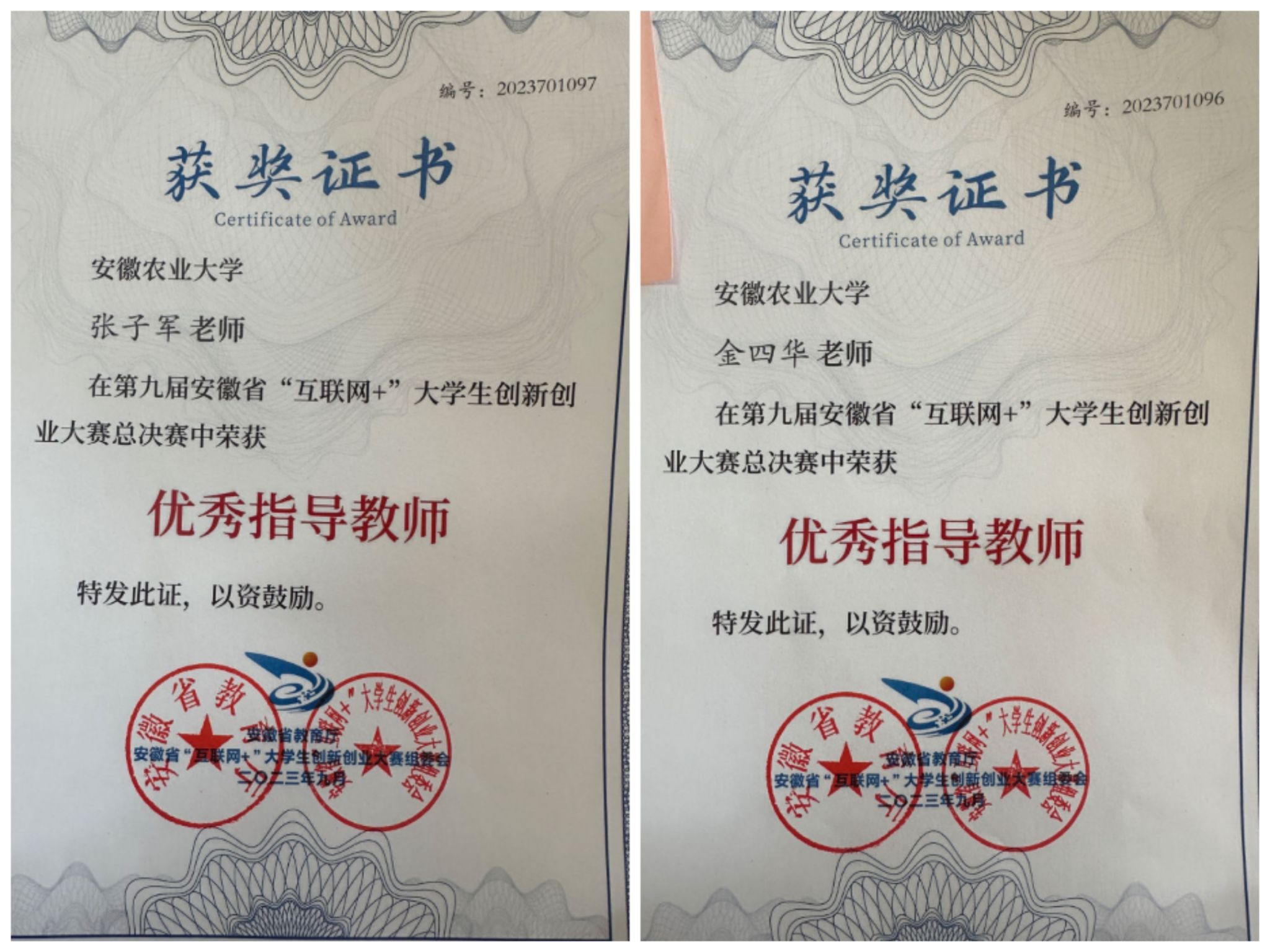 在比赛中,公司张子军与金四华两位优秀教师分别获得“优秀指导教师”的荣誉称号!