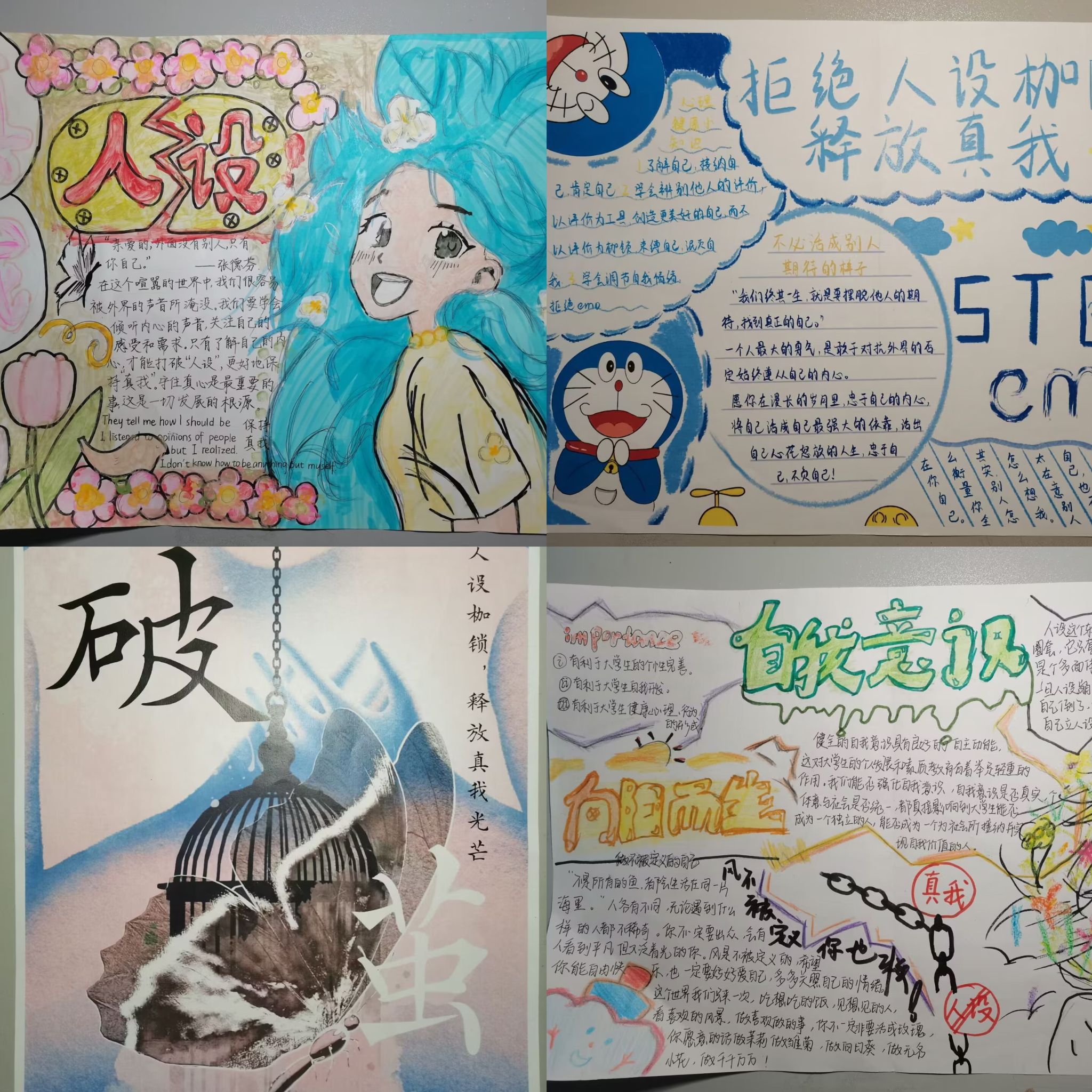 本网讯 4月中旬,yl1111永利集团开展了以“打破‘人设’束缚,释放‘真我’光芒”为主题的心理月主题活动。鼓励同学们展现真实的自己,寻找属于自己的光芒。参赛同学围绕主题,充分发挥想象力与创造力,制作出了一副副精美的手抄报、电子海报。活动结束后,学院心联会对优秀作品进行了评选与奖励。本次活动旨在以手抄报、电子海报制作为契机,进一步引导同学们减少束缚,更好地释放内在的潜力和创造力,勇敢地展现自己的真实想法与感受。(图文/张馨颖 郑冰堰 郭佳 编辑/杜亚娜 预审/章巍 审核/沈兆梅)