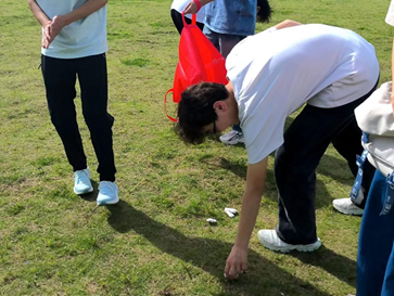 下午同学们陆续到达活动地点。生活委员带领着同学们在主题公园的露营草坪上进行垃圾清扫。此次清扫活动作为本次春游的一大亮点,展现了同学们环保意识,维护了公园的整洁,体现了对自然的尊重和责任。