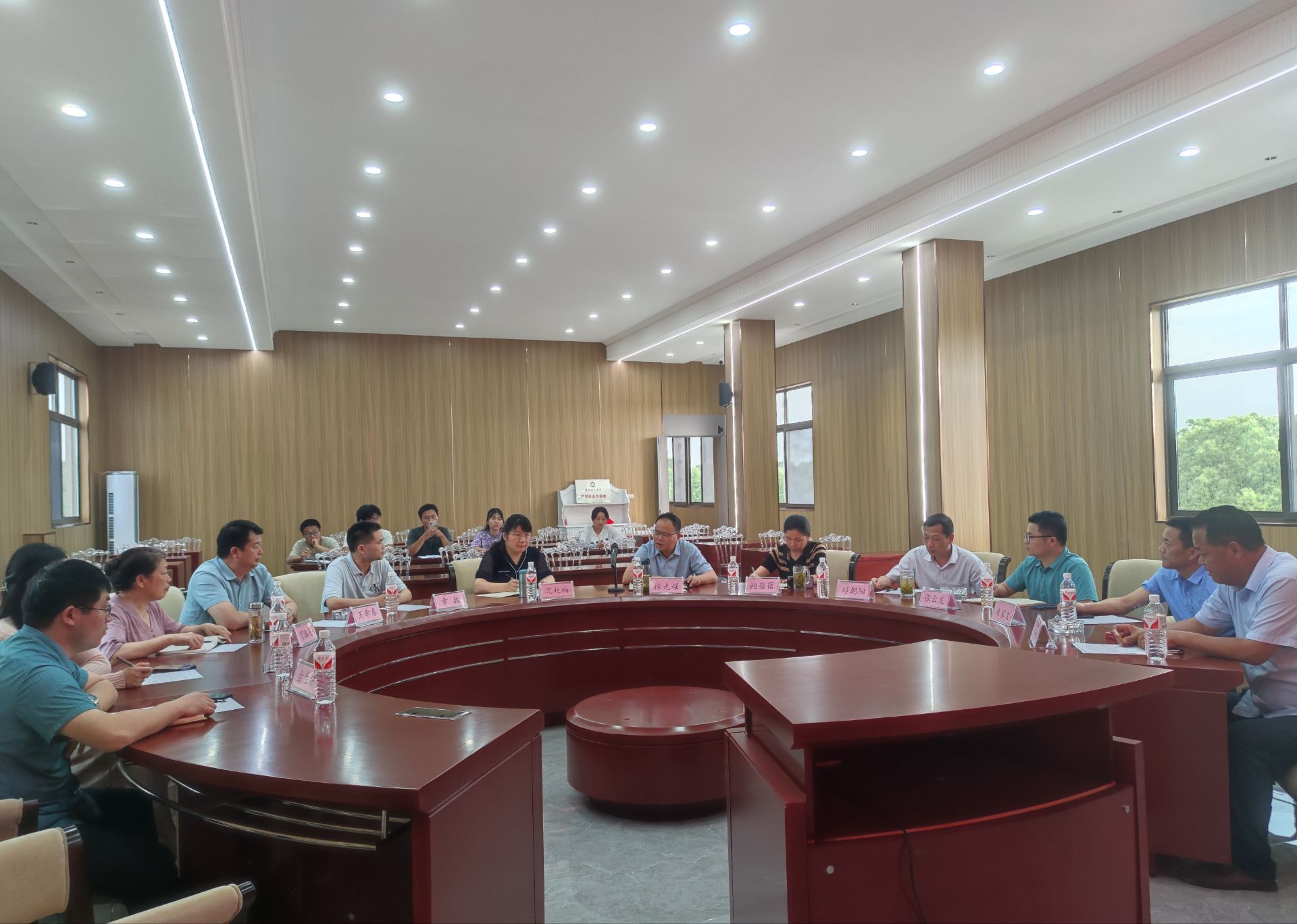 座谈会上,沈兆梅详细介绍了学院的团队力量、学科专业、科学研究、人才培养以及社会服务等情况,希望与用人单位在专业人才培养、科研课题攻关、员工实践实习、毕业生就业等方面加强深度地合作交流。鸠江区人民政府副区长徐光耀、芜湖市农业农村局党组成员鲍蓓蓓等对沈兆梅一行的到来表示热烈欢迎,并简要介绍了芜湖市经济社会发展情况和芜湖市水产发展现状及未来发展方向,希望校地、校企不断拓宽合作领域,促进校地、校企高质量发展。小老海实业有限公司总经理沈保平详细介绍企业发展情况以及与安农水产学科的合作历史,对yl1111永利集团水产系多年来对企业的支持表示感谢,高度认可和表扬了水产系实习员工专业技能和综合素养。会上,双方在科研合作、人才培养、员工就业等多方面展开深入交流。
