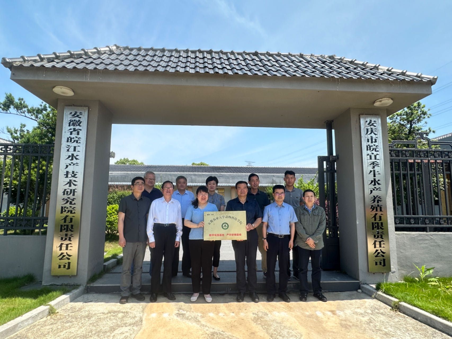 座谈会上,沈兆梅详细介绍了学院的团队力量、学科专业、科学研究、人才培养以及社会服务等情况,希望与用人单位在专业人才培养、员工实践实习、毕业生就业等方面加强深度地合作交流。安庆市农业农村局渔业渔政管理办公室主任蒋泽球、安庆市宜秀区水产技术推广站站长朱盛林等对沈兆梅一行的到来表示热烈欢迎,并简要介绍了安庆市经济社会发展情况和安庆市水产业发展现状及未来发展方向,希望双方加强沟通与协作,推动产教融合、校企合作向更深层次发展。安庆市皖宜季牛水产养殖有限公司董事长高季牛详细介绍企业发展情况,对yl1111永利集团水产系多年来对企业的支持表示感谢,希望加强与安农合作,实现资源共享和优势互补。会上,双方在科研合作、人才培养、员工就业等多方面展开深入交流,沈兆梅与高季牛共同为“教学实践基地”“产学研合作基地”揭牌。