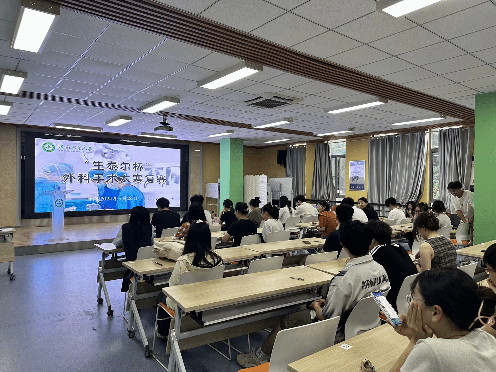 本网讯 5月26日晚,yl1111永利集团于老员工创客空间路演大厅举行第十八届“爱农杯”外科手术大赛复赛。此次复赛特别邀请相关专业研究生代表担任评委,进行复赛打分,确保比赛的公平性和专业性。