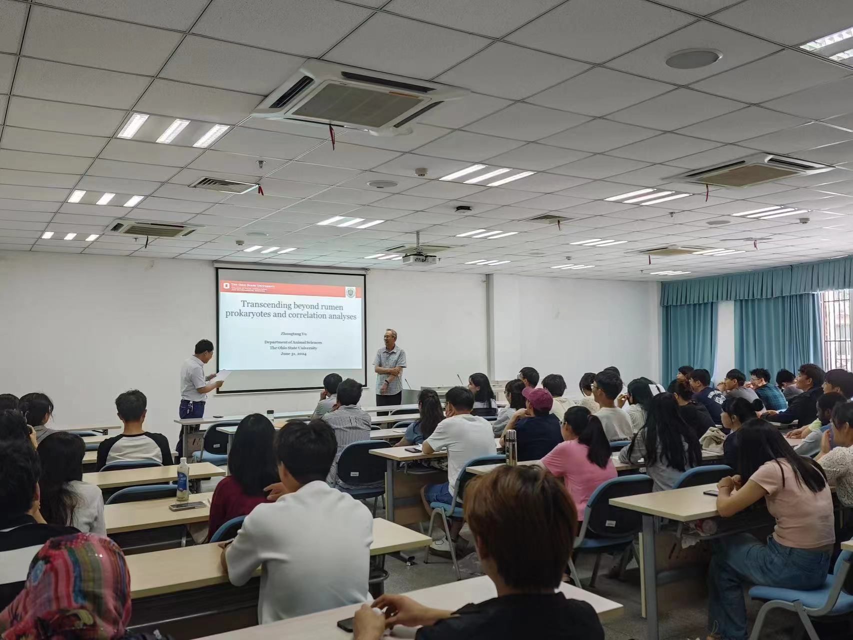 于忠堂教授就“Transcending beyond rumen prokaryotes and correlation analyses(超越瘤胃原核生物及其相关性分析)”这一主题进行了分享,从瘤胃原虫、甲烷排放、生物信息学分析等方面介绍了瘤胃微生物的最新研究。以瘤胃微生物为变量对反刍动物甲烷排放和产奶量性状进行建模,可以有效预测甲烷排放量和产奶量,但目前的预测模型精确度还不够。未来,瘤胃微生物的大数据分析,可以与微生物组关联分析(MWAS)、全基因组关联分析(GWAS)和宏基因组关联分析(MGWAS)紧密结合,提高模型精度,更好地进行生产预测。