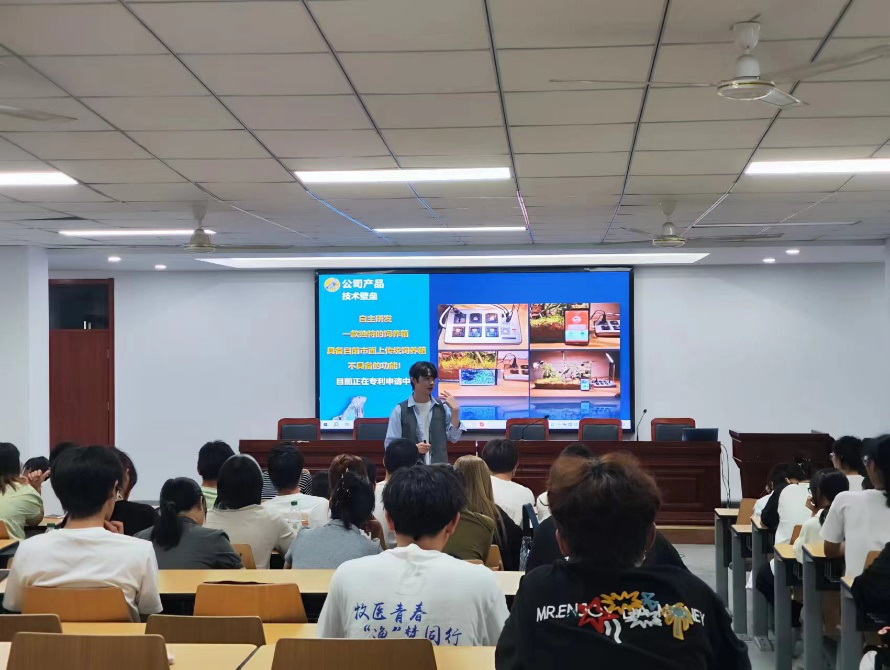 郑庆雨同学详细介绍了自己的成长经历和创业过程,并分享了自己在创业过程中的深刻体会。进入大学后,在学校的帮助与支持下,组建了“心有灵蜥”创业团队,积极参加各级创新创业赛事。竞赛之路并非一帆风顺,面对失败和压力,他也对自己的能力和选择产生过怀疑,但是从未放弃。从选手到评委,从创业青年到创业导师,郑庆雨从低谷中崛起,凭借不懈努力获得多类创业比赛奖项和多项实用专利,赢得了行业认可。