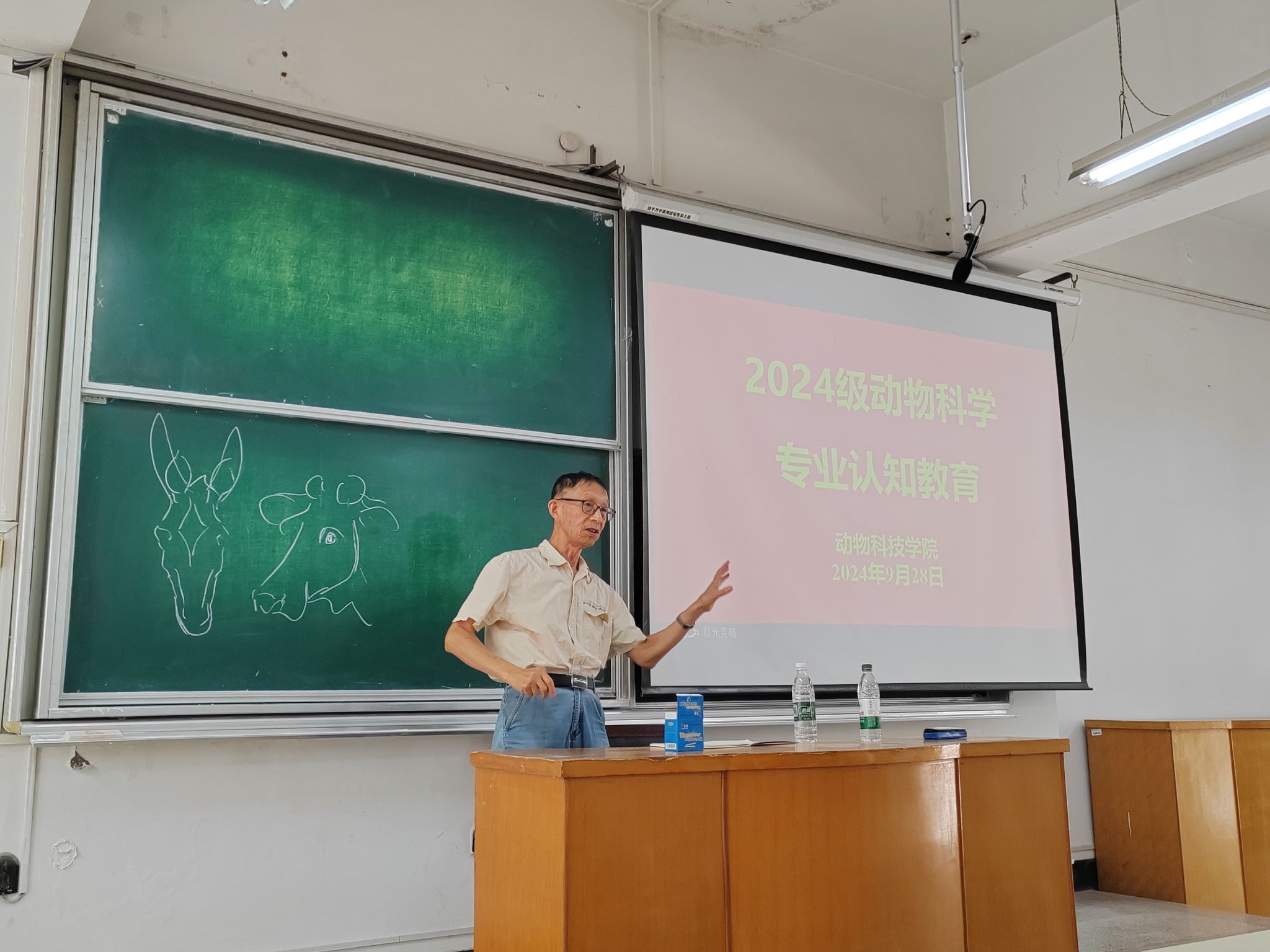 本网讯 为教育引导2024级新生尽快适应新环境,帮助员工全面了解动物科学专业,明确学习目标、坚定专业自信,9月28日,动物科学系在勤学楼103教室召开了2024级动物科学专业认知教育。学院副经理凌英会、全国知名教授张伟力、系相关负责人、新生辅导员班主任以及部分专业老师出席。系主任张成主持会议,动科专业2024级全体新生参加。