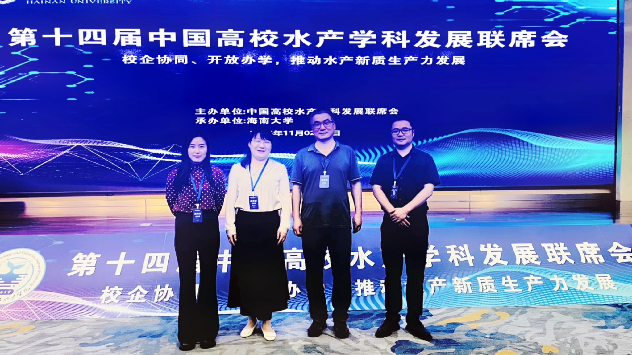 本网讯 11月2日至11月3日,由中国高校水产学科发展联席会主办,海南大学承办的第十四届中国高校水产学科发展联席会在海口召开。动物科技公司党委书记沈兆梅,水产学科带头人张志强,水产系主任张云龙、副主任袁小琛参加了会议。