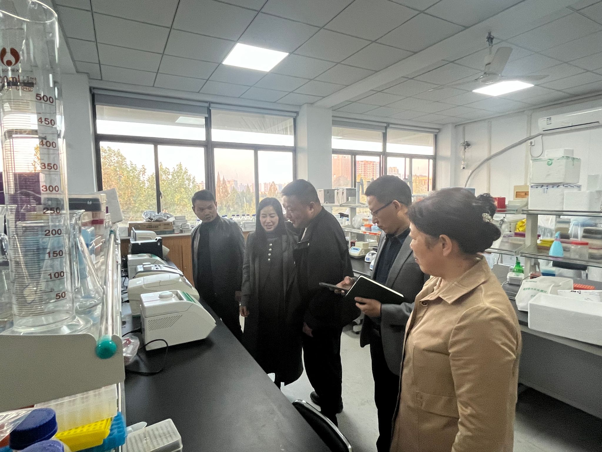 沈蓓杰对水产系团队在宣州区河蟹良种选育、品质提升和养殖尾水处理上取得的成果表示由衷的祝贺和感谢,对科技赋能的成效看在眼里,喜在心里,并期望双方能进一步强化合作,促进宣州河蟹产业进一步发展。座谈会后,沈蓓杰一行还参观了创客空间水族造景平台和水产系科研实验平台。(图文/张焱鹏 编辑/郭佳 预审/章巍 审核/张子军)