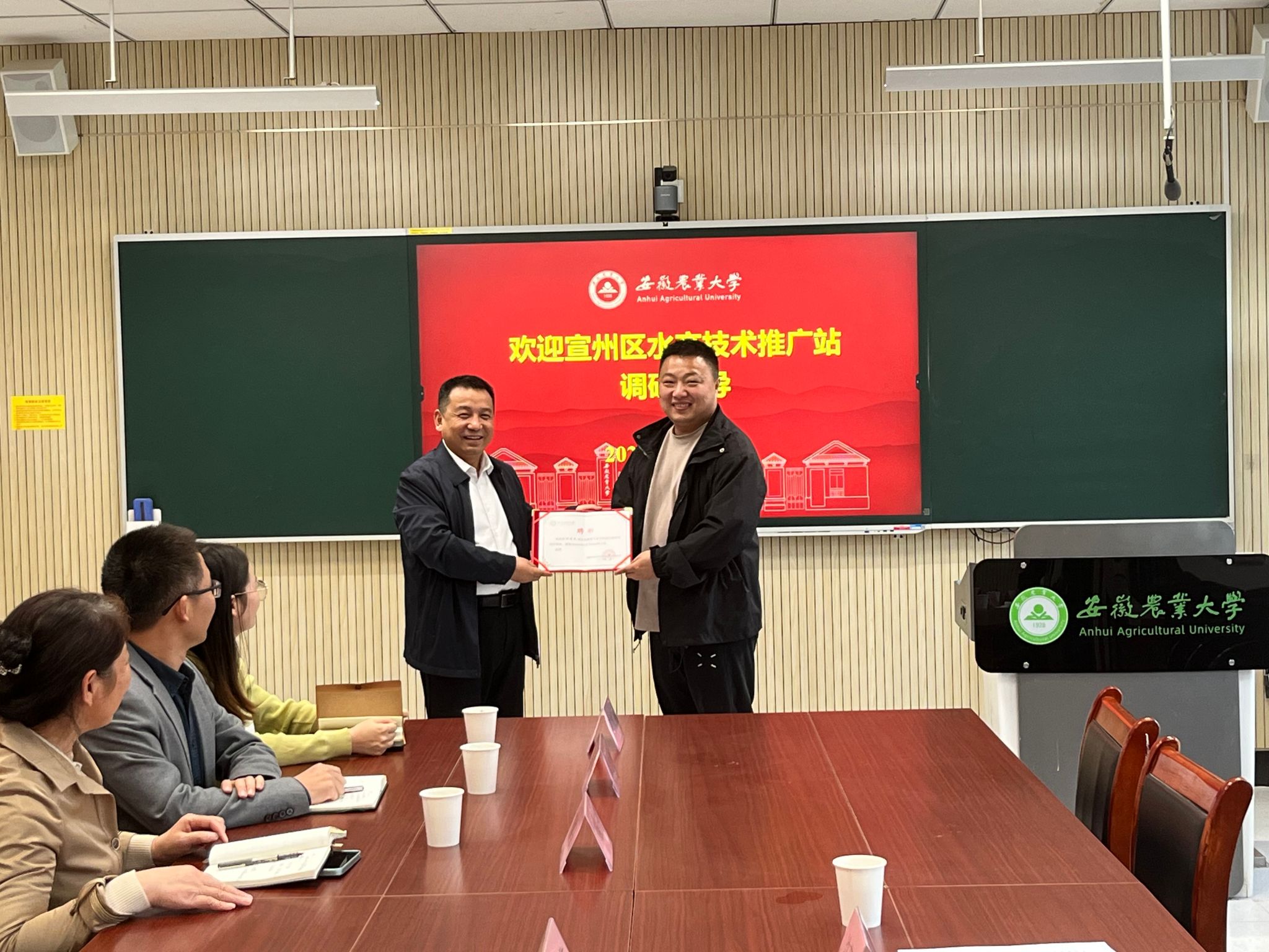 沈兆梅对沈蓓杰一行的到来表示欢迎,同时介绍了学院和水产系发展情况。水产系教师团队对双方共建特色试验站、科技小院开展的相关工作做了梳理和介绍。张子军对特色试验站和科技小院取得的成果表示高度认可,期望双方以后能在人才培养上的合作再创佳绩,并为沈蓓杰颁发渔业发展硕士校外导师聘书。