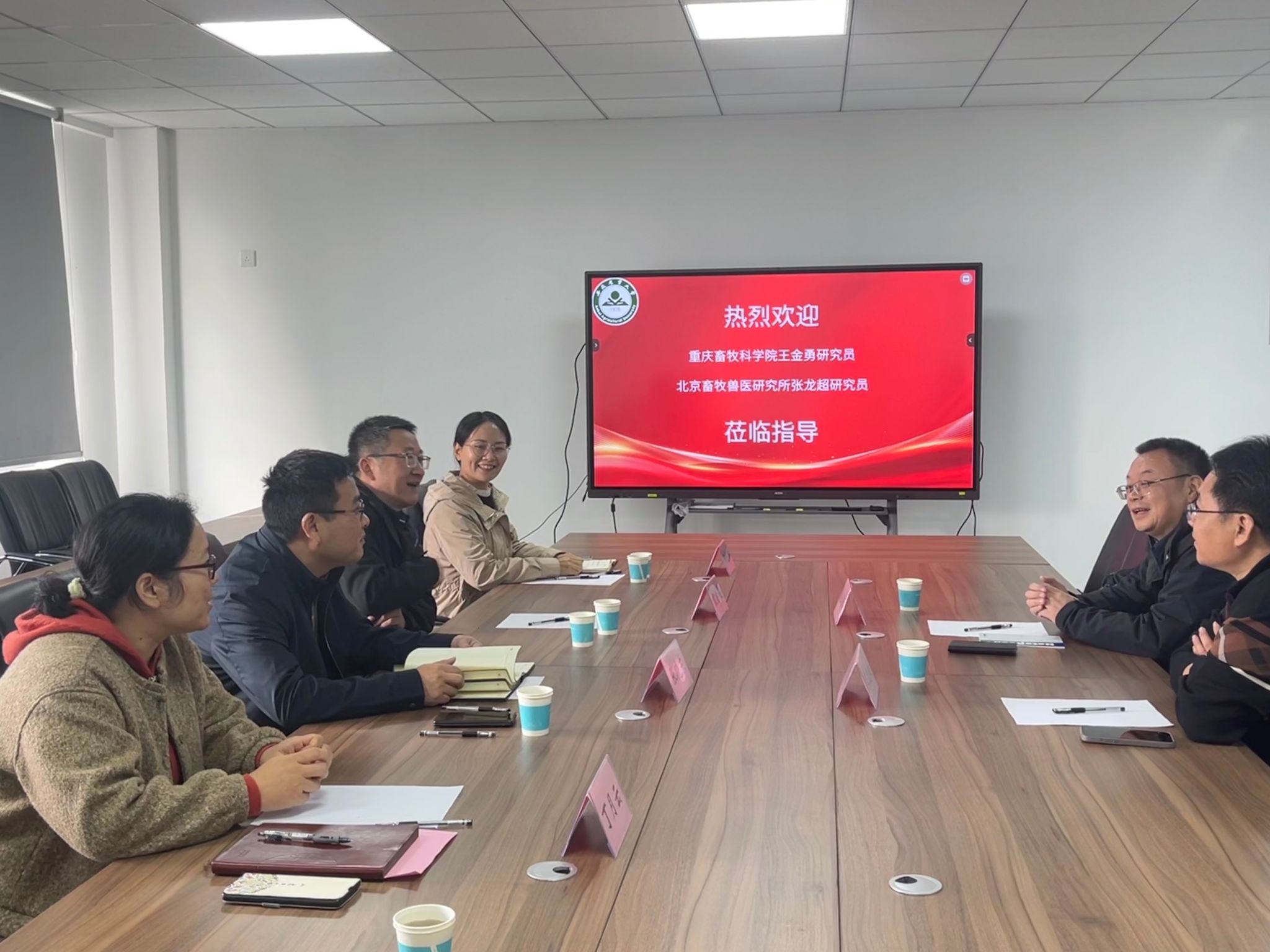 本网讯 11月8日,国家畜禽遗传资源委员会委员、国家生猪产业体系岗位专家、重庆市畜牧科学院王金勇研究员,中国农科院北京畜牧兽医研究所张龙超研究员到访公司,与学院生猪育种与养殖创新团队开展交流。团队成员殷宗俊教授、张晓东教授、郑先瑞和丁月云副教授与来访专家进行了座谈交流。