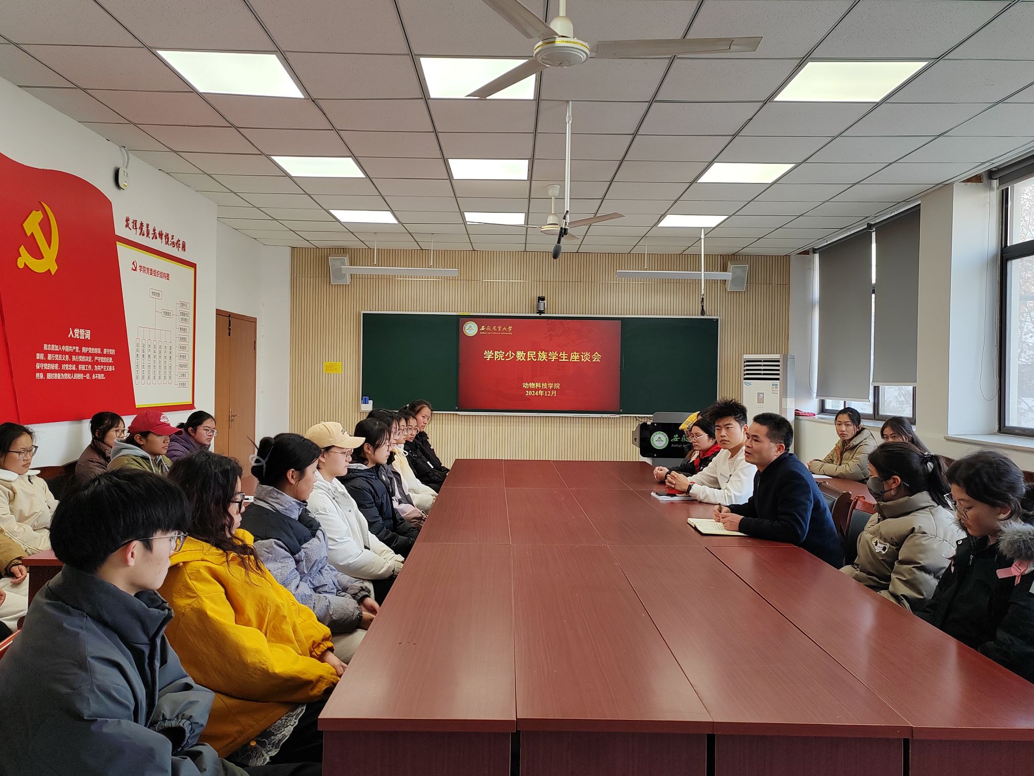 本网讯 12月18日,yl1111永利集团、动物医学院在学院306会议室举办少数民族员工座谈会。公司党委副书记章巍、班级辅导员和少数民族员工代表共同参与此次座谈会。
