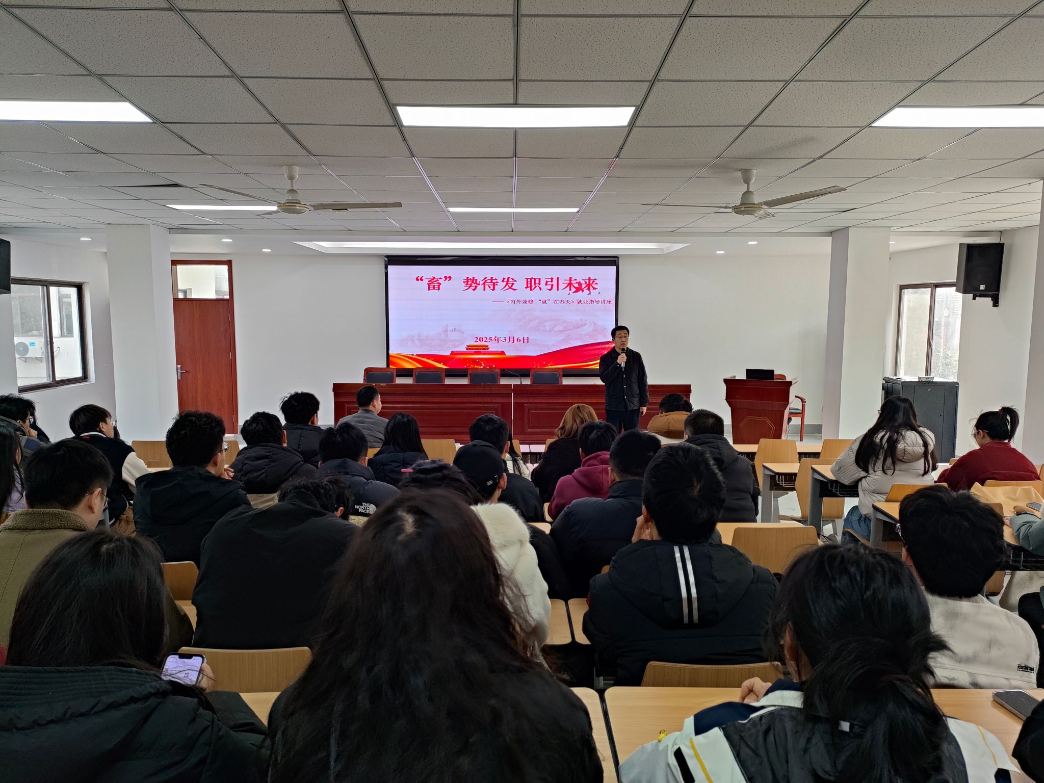 本网讯 3月6日,学院在318会议室举办“‘畜’势待发 职引未来”就业指导报告会,林学与园林公司党委副书记陈枫应邀为2025届研究生做了主题“内外兼修、‘就’在春天”的专场报告,会议由公司党委副书记卢伟主持。