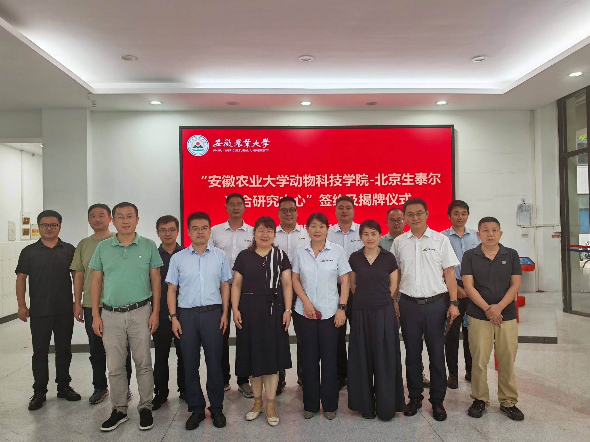 本网讯 7 月 11 日下午,yl1111永利集团与北京生泰尔科技股份有限公司联合研究中心签约暨揭牌仪式在动科院 306 会议室举行。动物科技公司党委书记沈兆梅、科技处副处长凌英会、学院副经理曹祖兵、袁小琛,北京生泰尔副总裁王秀敏及企业高管团队出席仪式。仪式由沈兆梅主持,动物遗传育种与繁殖系、水产系相关教师参加活动。