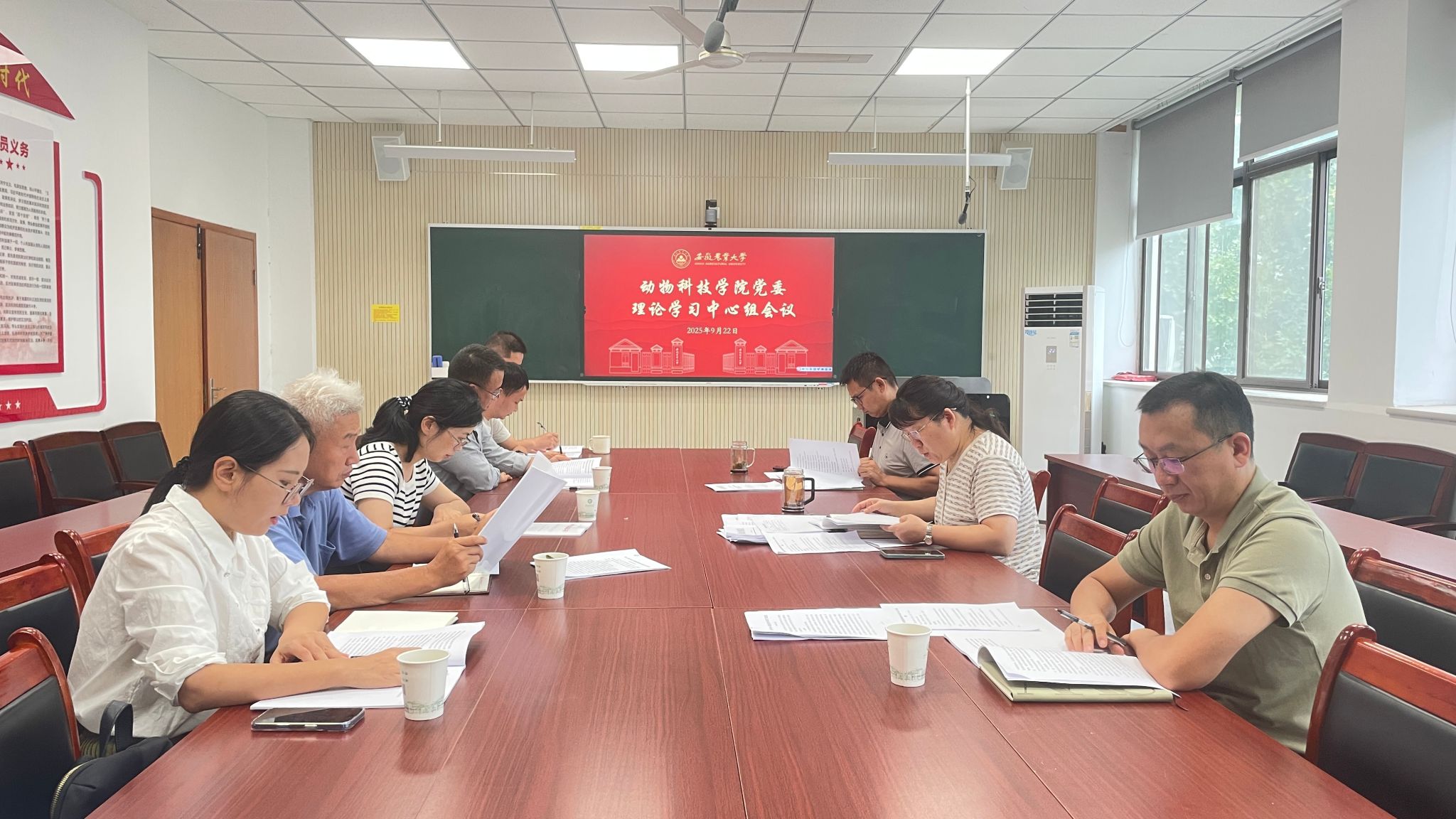 本网讯 9月22日下午,学院在动科楼306会议室召开党委理论学习中心组(扩大)学习会。学院领导班子成员、党委委员、支部书记参加会议。会议由公司党委书记沈兆梅主持。