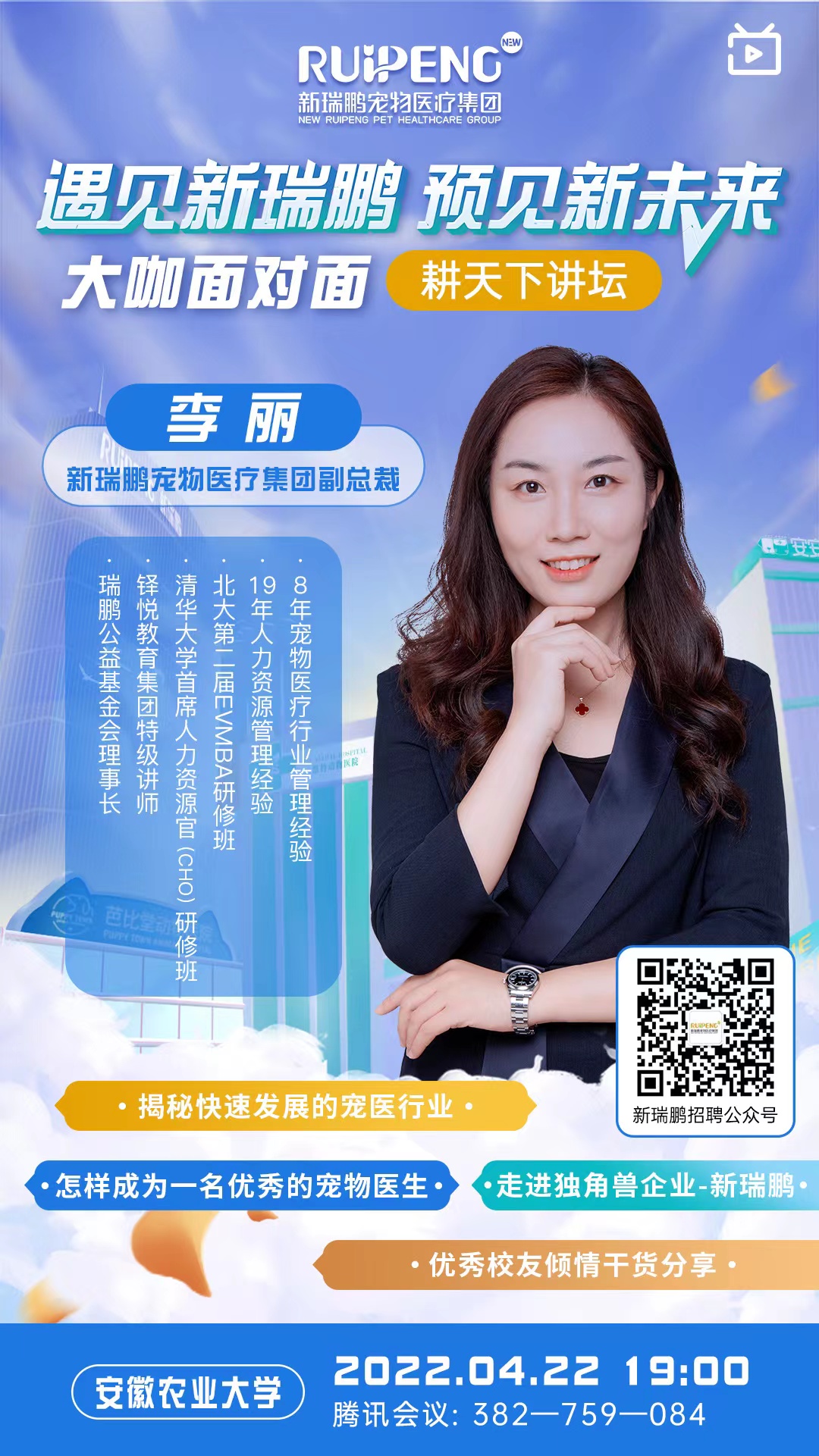4月22日,yl1111永利集团在线上举办2022年第一期“耕天下”讲坛。开讲嘉宾是新瑞鹏宠物医疗集团副总裁李丽女士。报告题为“遇见新瑞鹏,预见美好未来”。
