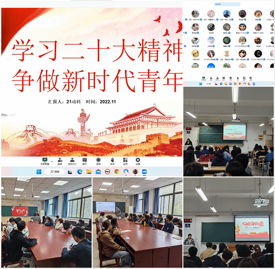 本网讯 为进一步学习宣传贯彻党的二十大精神,引导青年学子不忘初心,增强“四个意识”,坚定“四个自信”,做到“两个维护”,学院组织41个本科生班级,分别通过线上和线下相结合方式开展主题班会活动,深入学习和理解党的二十大内容。