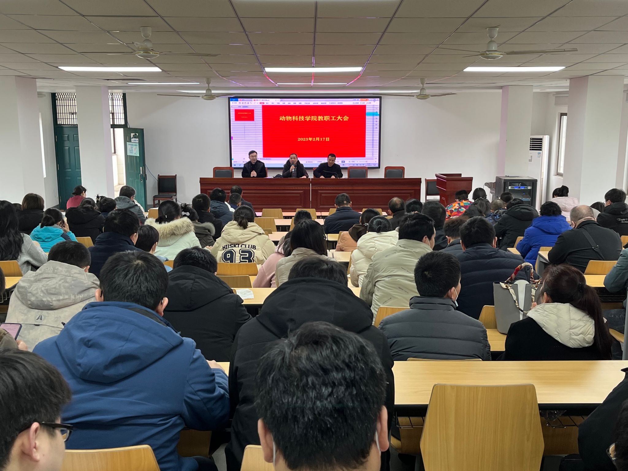 2月17日,学院召开全体教职工大会,进一步学习学校相关文件精神,做好新学期开学师生思想动态教育管理、部署学院开学近期工作。