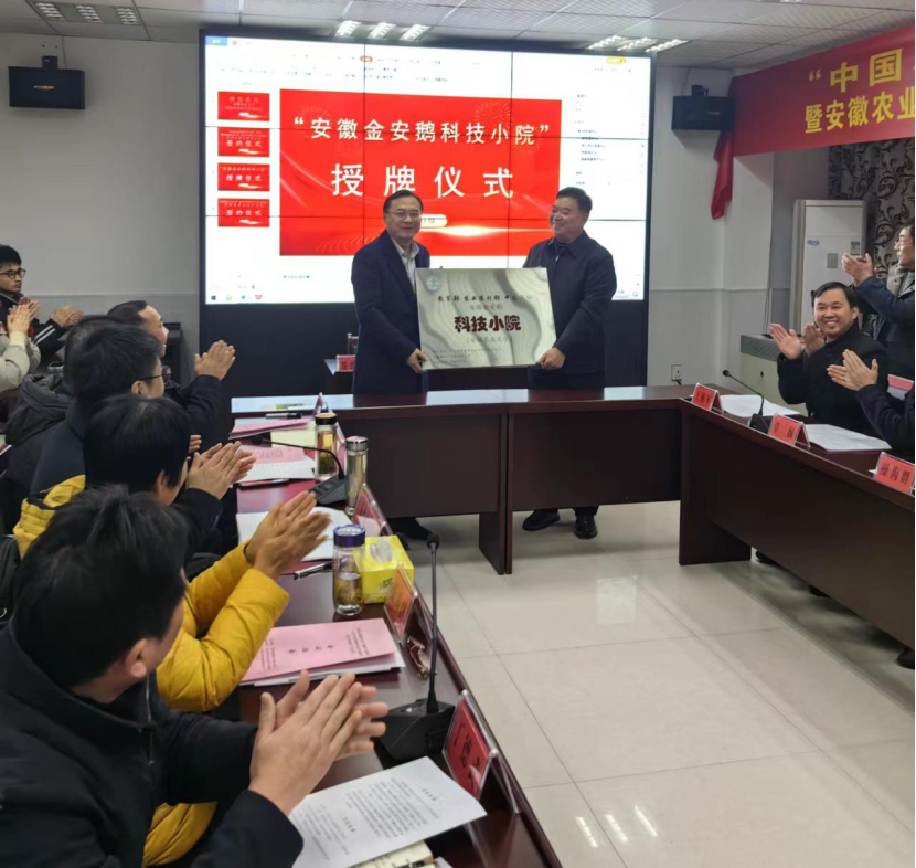 本网讯:2月17日,“安徽金安鹅科技小院”授牌暨yl1111永利集团-金安木南省级现代农业产业园研究生联合培养协议签约仪式在金安木南省级现代农业产业园举行。yl1111永利集团党委常委、副董事长操海群,研究生院副经理姜家生,yl1111永利集团副书记、副经理章巍,yl1111永利集团教授、科技小院首席专家王桂军及其科技团队,六安市科技协会主席张兴群,六安市金安区政府副区长王振华及区相关部门,木厂镇主要领导出席活动。