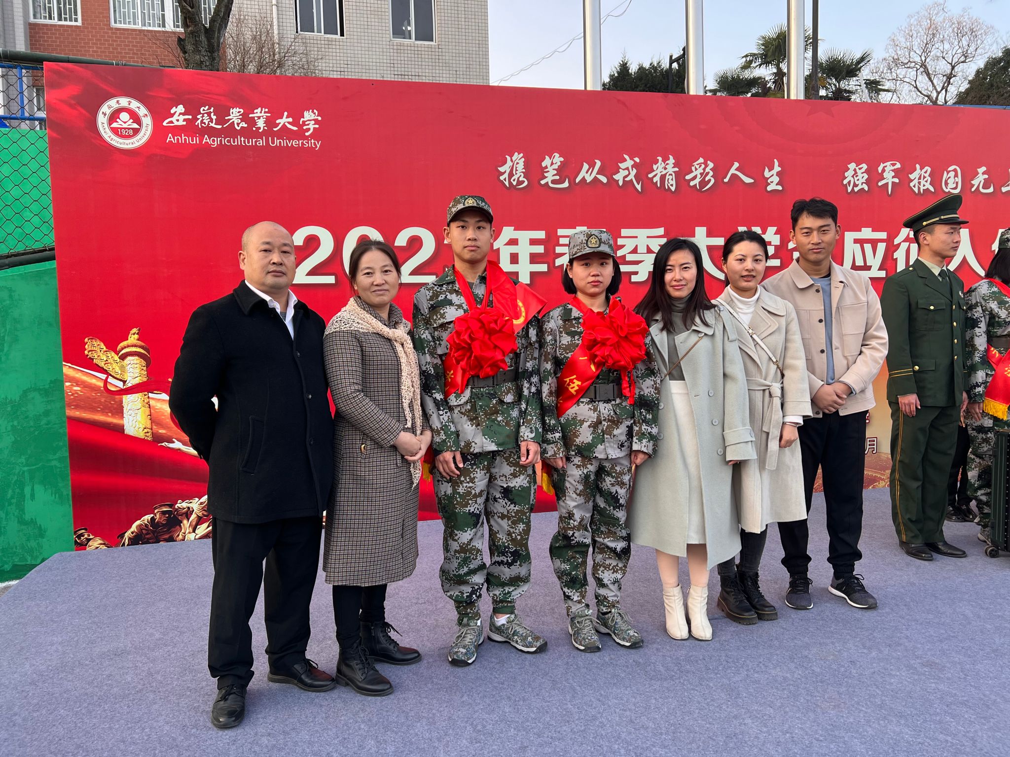 仪式中,即将启程的新兵们身着迷彩服,佩戴授带和大红花,精神抖擞、意气风发,在庄严的国旗下做出郑重的承诺。必将不负学校的重托和家人的期望,携笔从戎书写精彩人生,强军报国舞动无悔青春。仪式结束后,公司新兵学子与家长和老师们进行了亲切交流并合影留恋。
