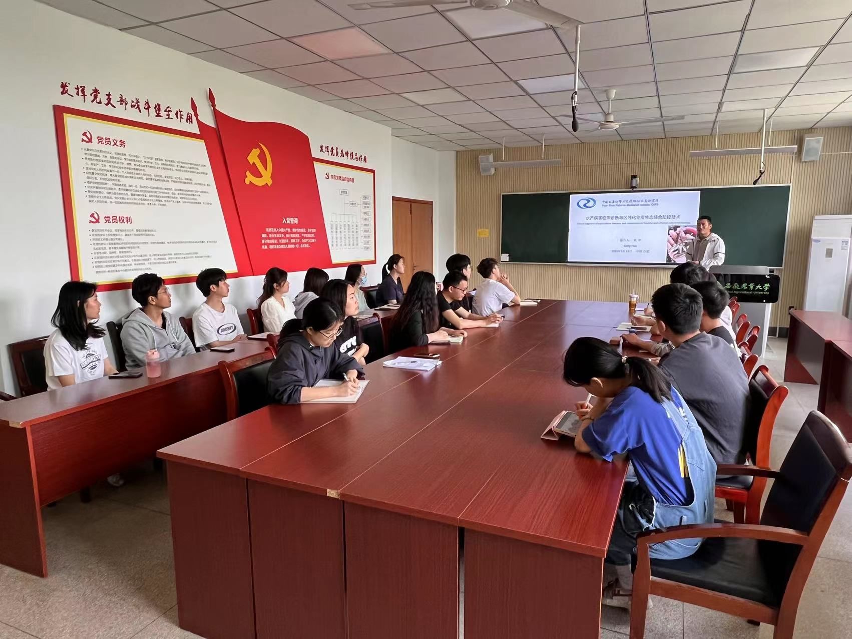 此次讲座,巩华以幽默风趣的语言为研究生们系统全面地讲述了水产病害临床诊断、水产疫苗使用现状和研究进展、水质调控及现代化工厂化水产养殖技术等知识,兼具理论性和实践性,员工们均表示受益匪浅。