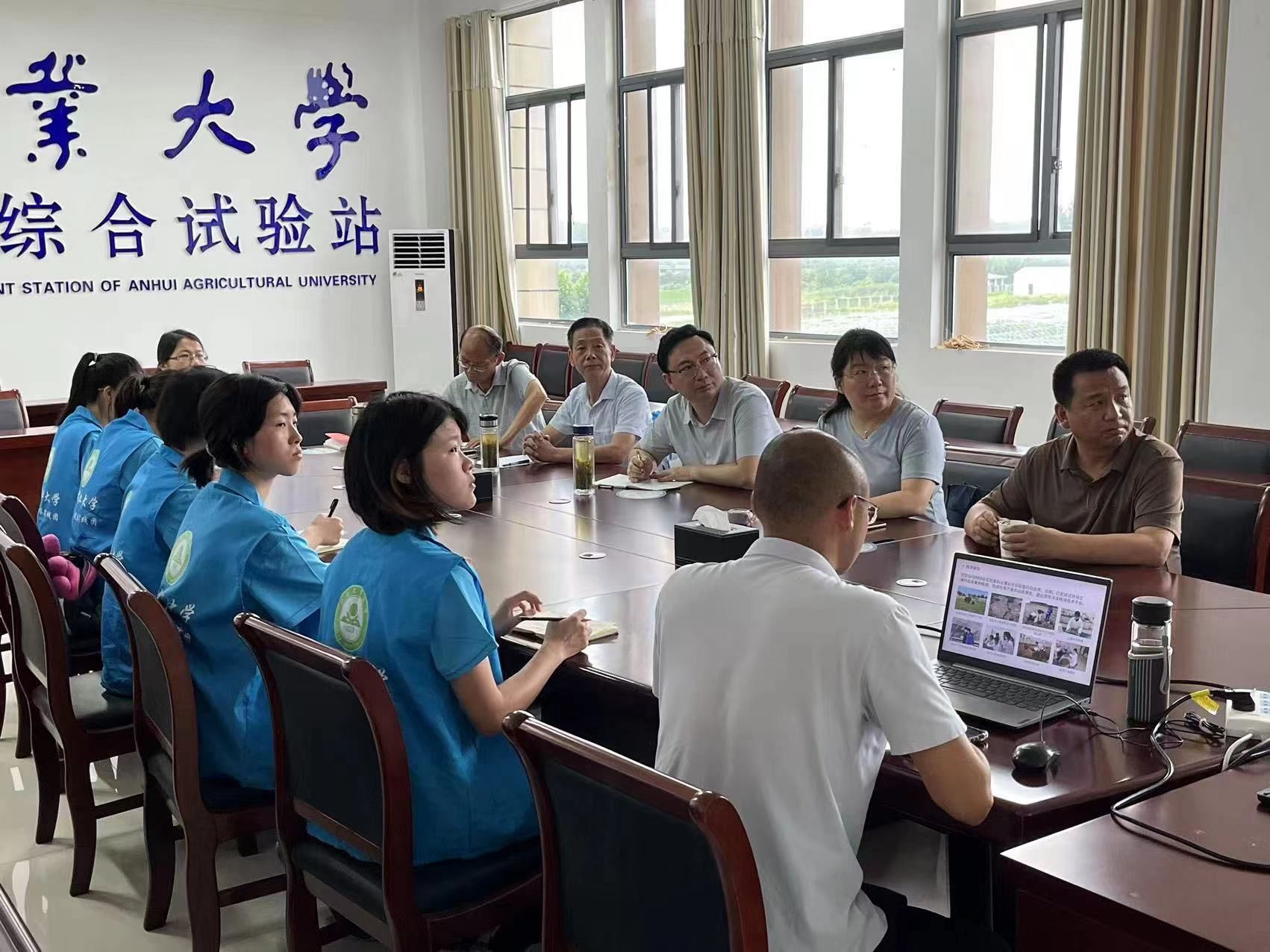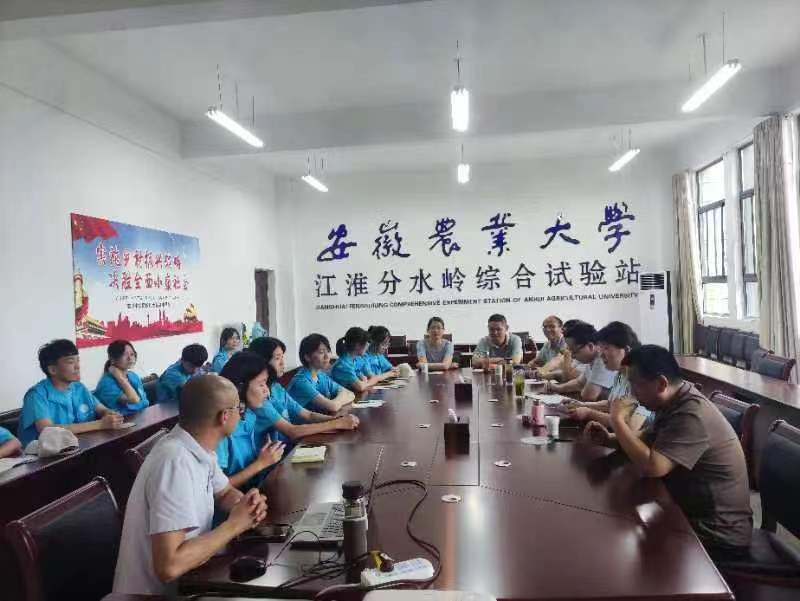 本网讯 7月15日,动物科技公司党委副书记(主持工作)沈兆梅,经理张子军,副经理涂健一行来到定远县江淮分水岭综合试验站看望慰问正在开展暑期“三下乡”社会实践活动的师生们并召开座谈会。