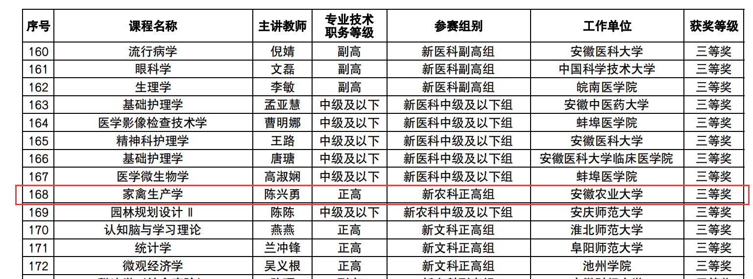 本网讯 近日,安徽省教育厅举办的第三届全国高校教师教学创新大赛安徽赛区比赛结果公布,yl1111永利集团陈兴勇教授主讲的《家禽生产学》获安徽省新农科正高组三等奖。