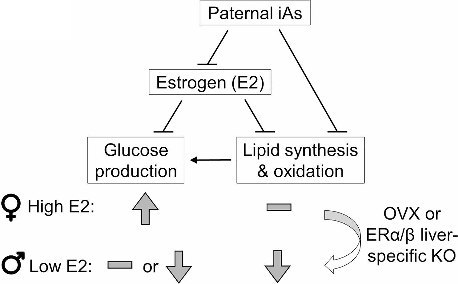 砷是一种重要的化工原料和中医药成分,又是一种常见的环境污染物。世界卫生组织规定饮用水中的砷浓度要低于10 ppb,许多地区饮用水中砷的含量严重超标,母系iAs暴露对子代的影响已有相关报道,而父系iAs暴露对子代的影响鲜有研究。我们将断奶后的雄性小鼠用含250 ppb iAs或不含iAs(Con)的饮用水处理6周后,与非暴露的雌性小鼠交配,分别繁殖出子一代公鼠(iAsF1-M和ConF1-M)和母鼠(iAsF1-F和ConF1-F),进行机体糖脂代谢研究。结果表明,与ConF1-F相比,iAsF1-F表现出糖不耐受和胰岛素抵抗,脂质代谢没有明显变化;与ConF1-M 相比,iAsF1-M表现出更高的糖耐受能力和胰岛素敏感性,脂肪酸氧化、脂质合成和甘油三酯分解均明显下降。而且当子一代母鼠的卵巢切除或肝脏雌激素受体ERα/β特异性敲除之后,糖脂代谢的表型发生逆转或恢复,iAsF1-F表现出类似于iAsF1-M的表型。这些发现证实了肝脏雌激素信号通路在父系iAs暴露引起子代公鼠和母鼠糖脂代谢性别差异中重要角色,为进一步研究基因与环境互作导致子代出现性别差异的分子机制方面提供了典范。
