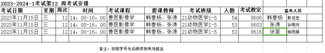 动科院2023-2024-1考试第12周考试安排
