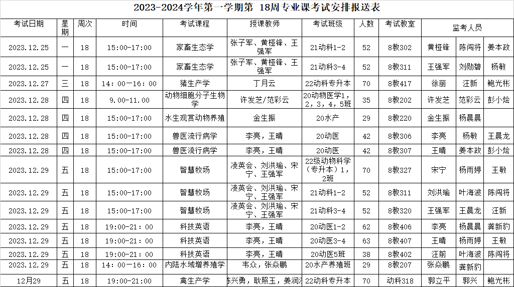 动科院-2023-2024-1第 18周专业课考试安排 -.xlsx