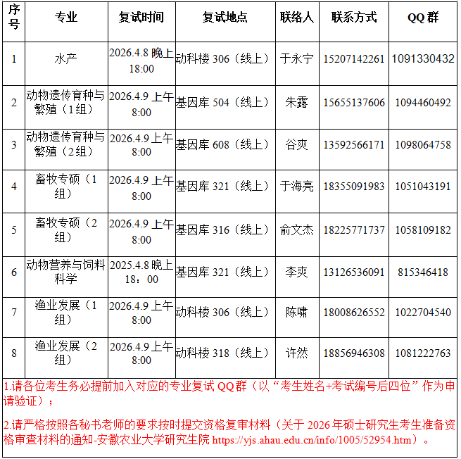 yl1111永利集团2026年硕士研究生分专业复试工作信息表(调剂)
