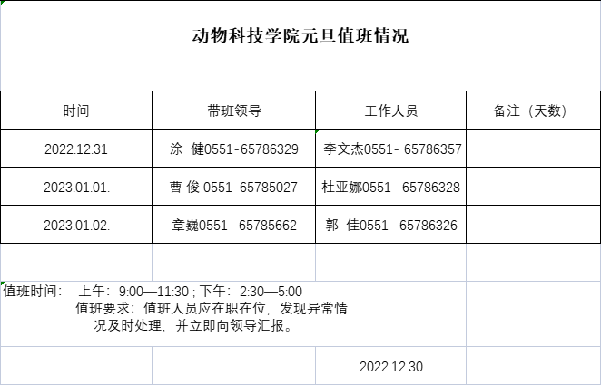 元旦值班表 2023