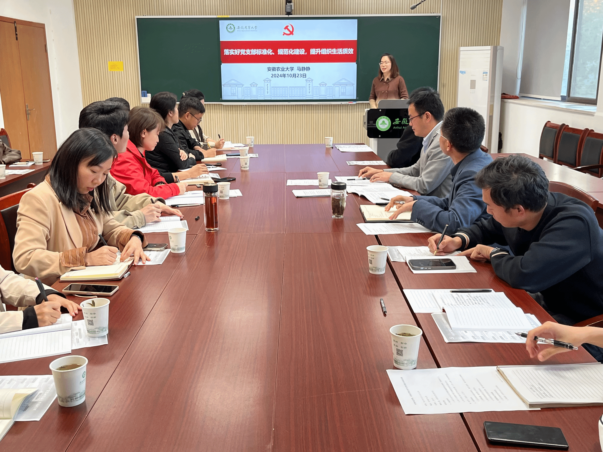 参会人员集体学习了习近平总书记考察安徽重要讲话精神、《中国共产党不合格党员组织处置办法》以及学校2024年下半年党支部“一月一主题”活动安排,并对学院近期党建具体工作进行了部署。