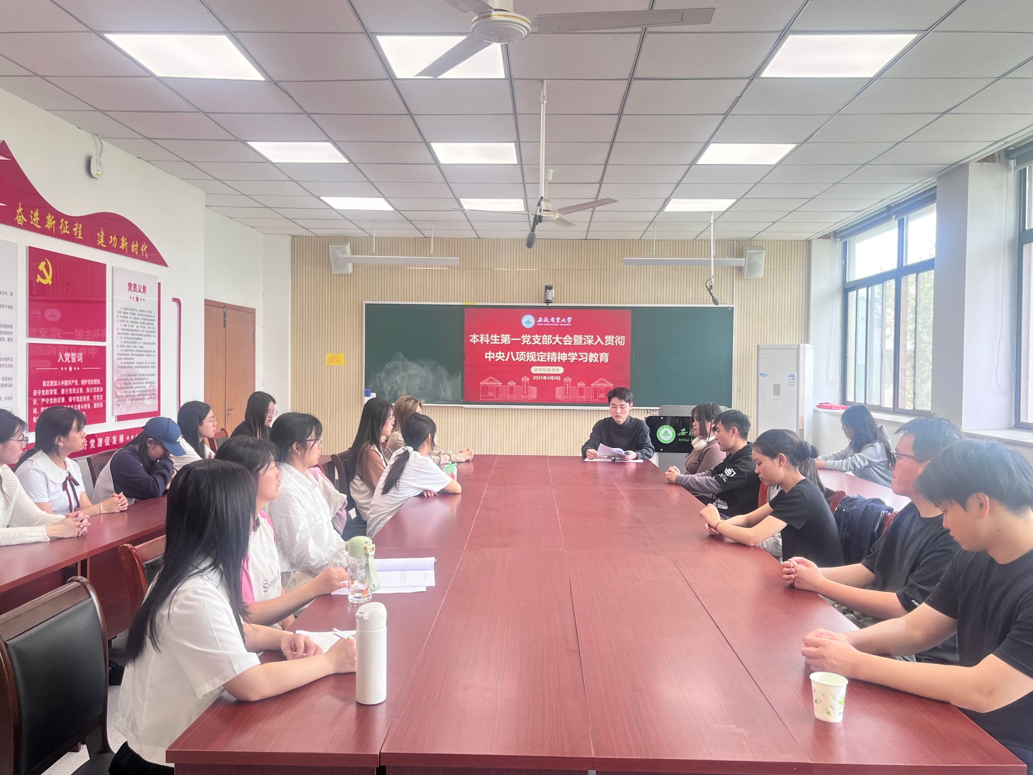 本网讯 4月9日,本科生第一党支部在动科院306召开了深入贯彻中央八项规定精神学习教育。会议由党支部书记侯坤主持,全体党员参加会议。