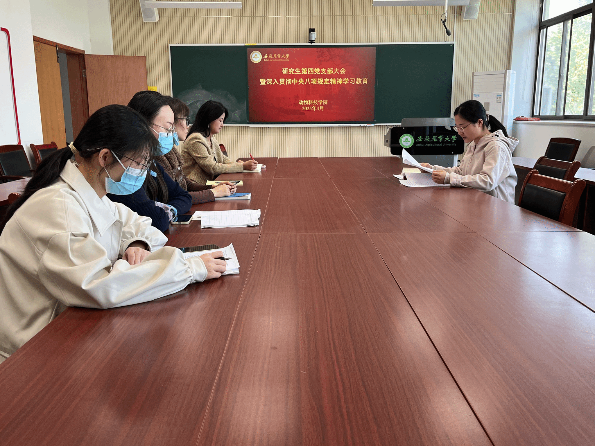 本网讯 4月15日,学院研究生第四党支部在动科306会议室召开党支部大会。会议由党支部书记郭佳主持,全体党员参加会议。