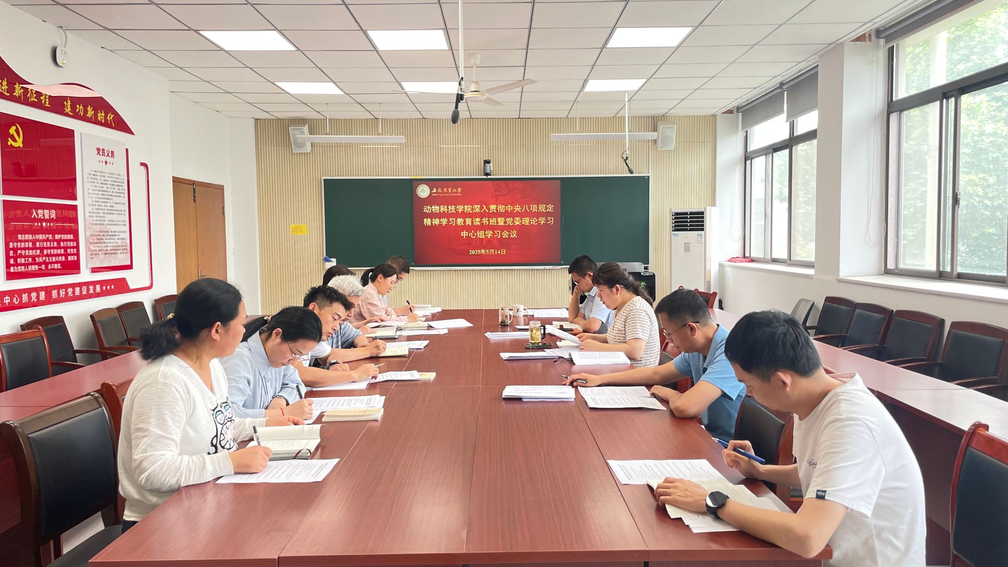 本网讯 5月14日下午,学院在动科楼306会议室召开深入贯彻中央八项规定精神学习教育读书班暨党委理论学习中心组学习会议。学院领导班子成员、党委委员和各党支部书记参加会议。会议由公司党委书记沈兆梅主持。