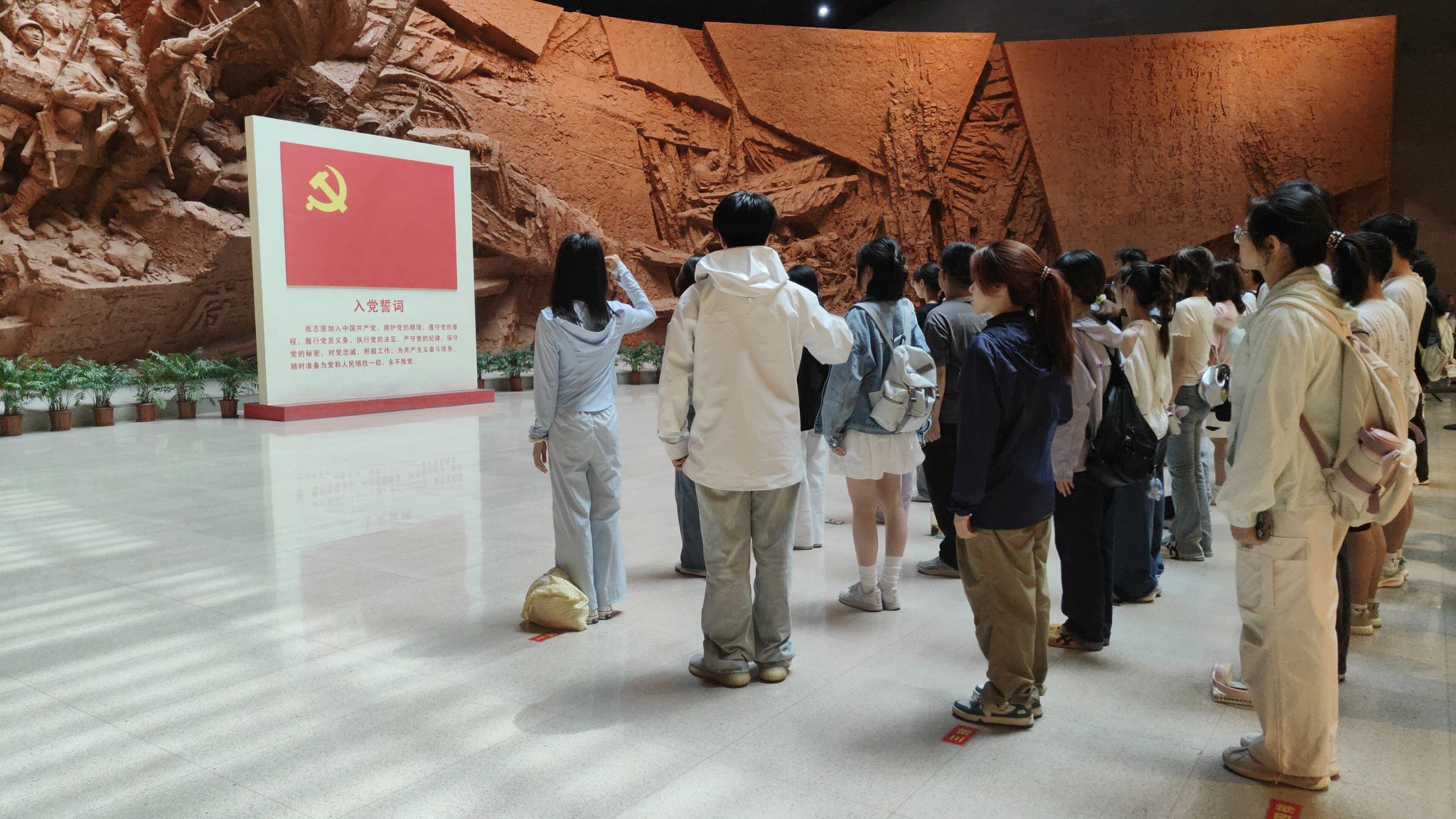 活动中,全体党员、入党积极分子通过馆内丰富的文物、影像和场景复原,深刻领悟到“渡江精神”中蕴含的敢为人先、不畏艰险的革命意志。在纪念馆庄严肃穆的氛围中,面对鲜红的党旗,全体党员庄严举起右拳,重温入党誓词,一句句誓言铿锵有力,激荡人心。随后,同学们认真参观场馆,不时发出感慨,有的同学表示被战士们为了革命事业舍生忘死的精神深深打动,有的同学则对军民团结如一人所凝聚起的强大力量感到震撼,大家深刻领悟到红色政权的来之不易,新中国成立的来之不易,今天的幸福生活更是来之不易。