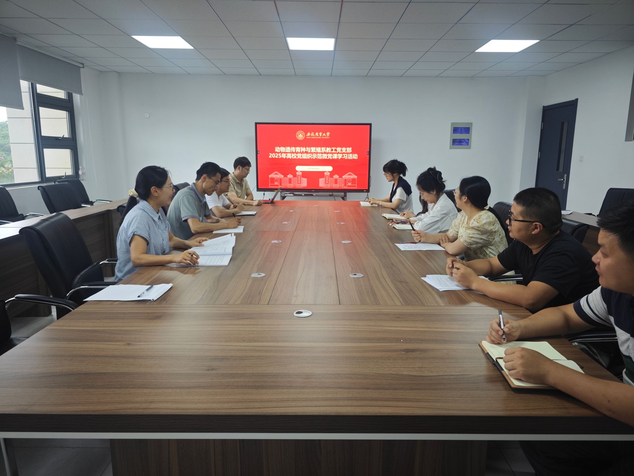本网讯 6月6日,动物遗传育种与繁殖系于组织全体党员,通过教育部“微言教育”线上平台集中学习了高公司党组织示范微党课《党的作风建设的重要意义》。本次学习采用“线上集中观看+分组研讨”模式,系党支部书记牵头组织,在研讨环节聚焦作风建设与科研育人的融合路径,指出动物遗传育种与繁殖学科肩负着保障国家畜禽种源安全的重任,必须将作风建设融入育人全程。(图文/郑先瑞 王强军 编辑/郭佳 预审/卢伟 审核/沈兆梅)