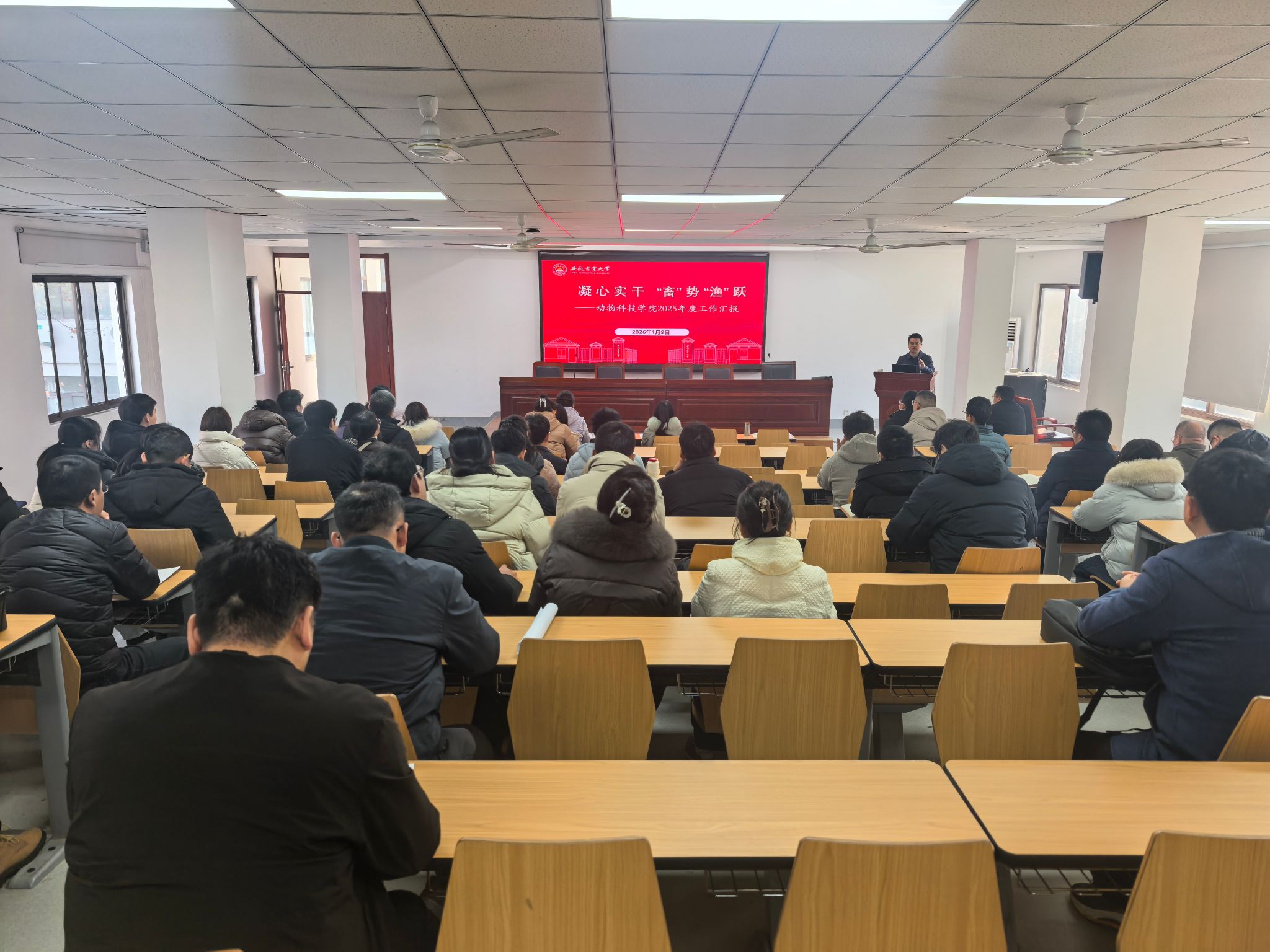 会上,经理凌英会作题为《凝心实干 “畜”势“渔”跃》的学院2025年度工作报告。报告系统梳理了学院在党建引领、主题教育、组织建设、人才培养、团队引育、专业布局、学术平台搭建、科技创新、社会服务与产业贡献等方面取得的进展与成果,并客观分析了当前存在的问题与挑战,明确了下一步的发展思路与重点任务。报告强调,要持续强化内涵建设,推动学院各项事业高质量发展。