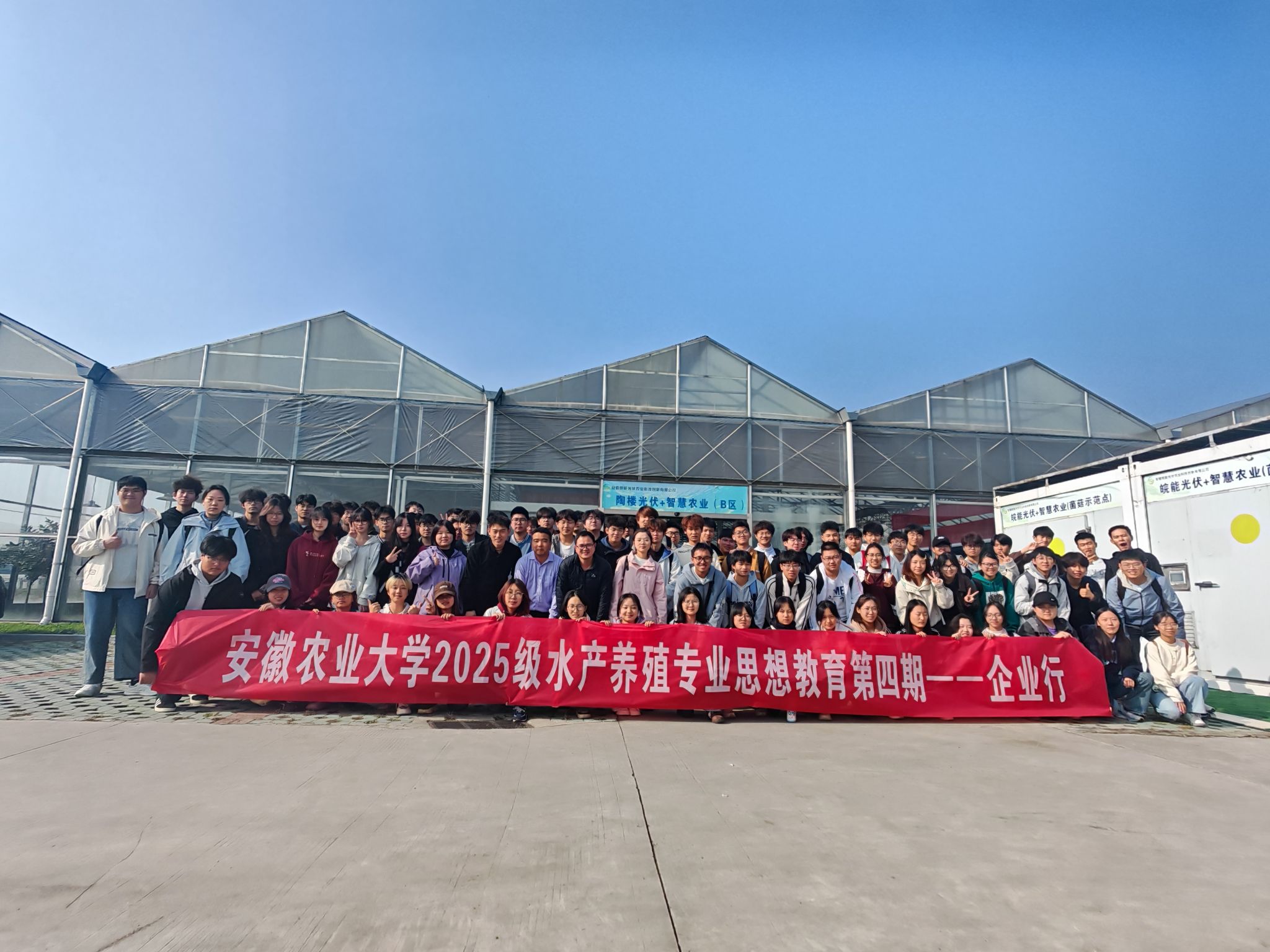 本网讯  11月14日,为深化校企协同育人,以实践强化专业思想引领,帮助新生筑牢专业认知、坚定职业信念,学院组织2025级水产养殖专业全体新生赴安徽皖能光伏农业科技创新有限公司、淮南海大生物饲料有限公司开展参观学习。