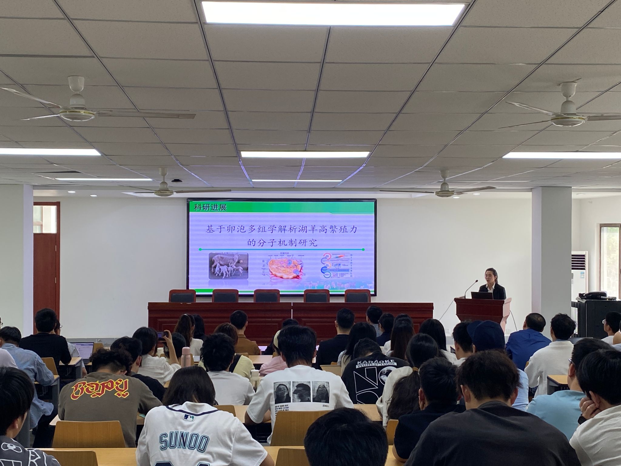 7位青年学者围绕畜禽育种、繁殖、水生动物营养和疫病防控等领域展开交流,讲述最新研究进展,分享科研成果,精准对接产业需求,加强交叉学科合作。让与会者开阔视野、启迪智慧,在学术的冲撞与交融中产生创新思维,为学院发展建言献策。