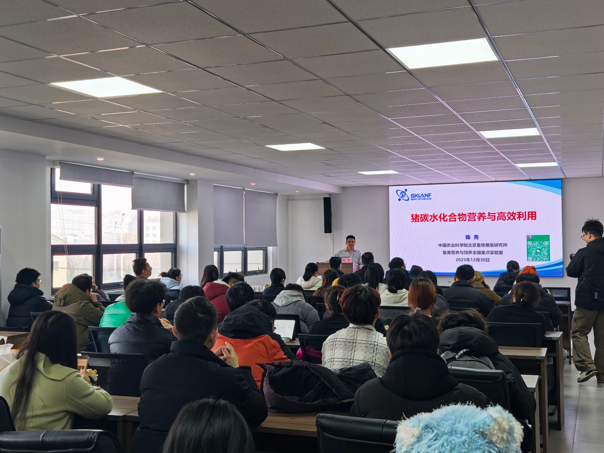 本次报告特邀中国农业科学院北京畜牧兽医研究所陈亮研究员,作题为“猪碳水化合物营养与高效利用”的学术分享。陈亮研究员从宏观角度阐述了开发饲料资源、提高饲料利用率的重要意义。结合团队科研实践,重点介绍了在非淀粉多糖研究、功能性微生物开发等方面取得的最新进展及其对行业发展的推动贡献。最后,他分享了个人在研究过程中的心得与体会,并探讨了如何通过科研工作实现个人价值提升。
