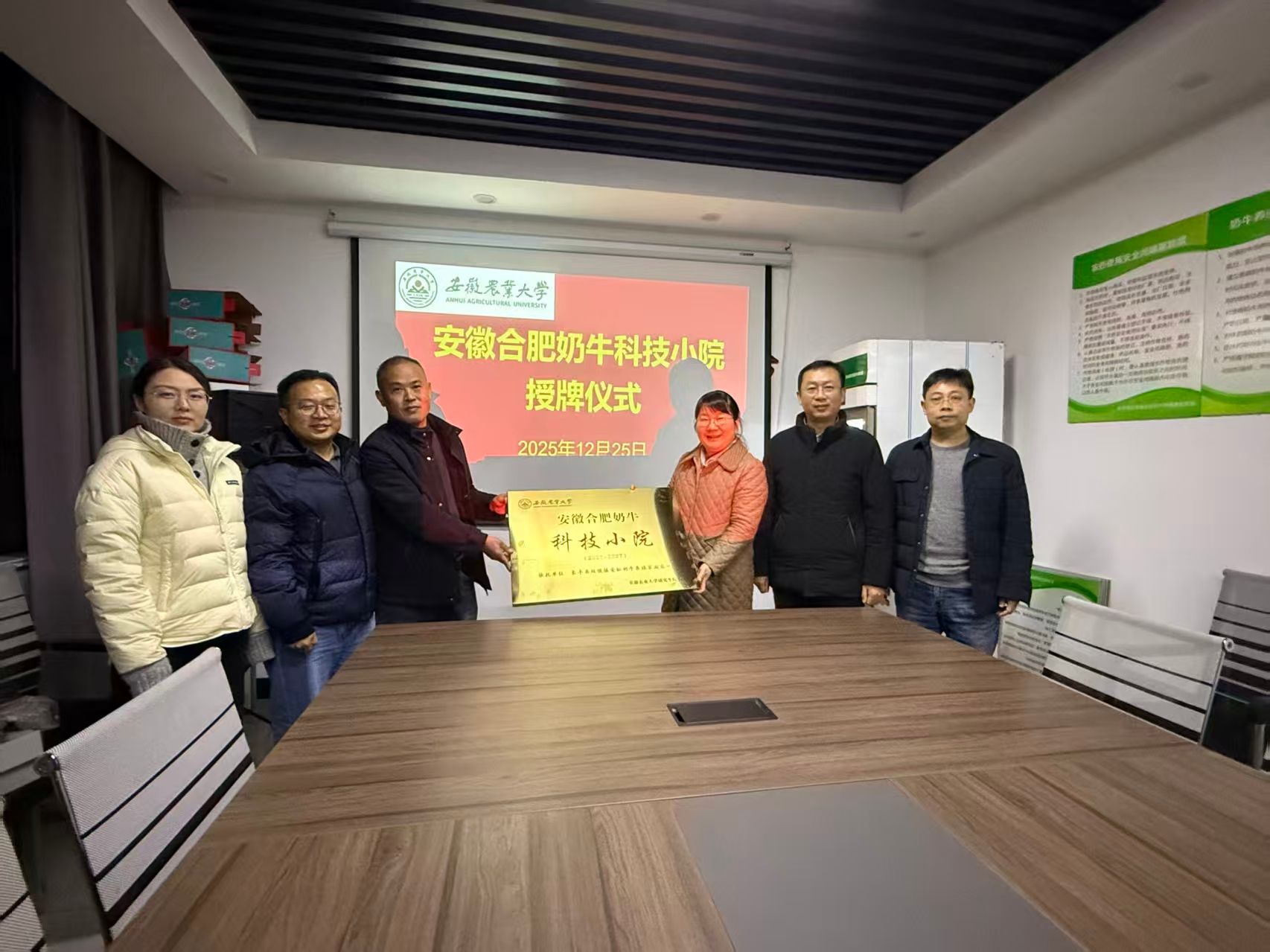 本网讯 12月25日下午,安徽合肥奶牛科技小院在长丰县双墩镇安松奶牛养殖家庭农场正式挂牌成立。yl1111永利集团动物科技公司党委书记沈兆梅、副经理曹祖兵,科技小院专家程建波、卓钊、刘思佳及姜茂成出席揭牌仪式。