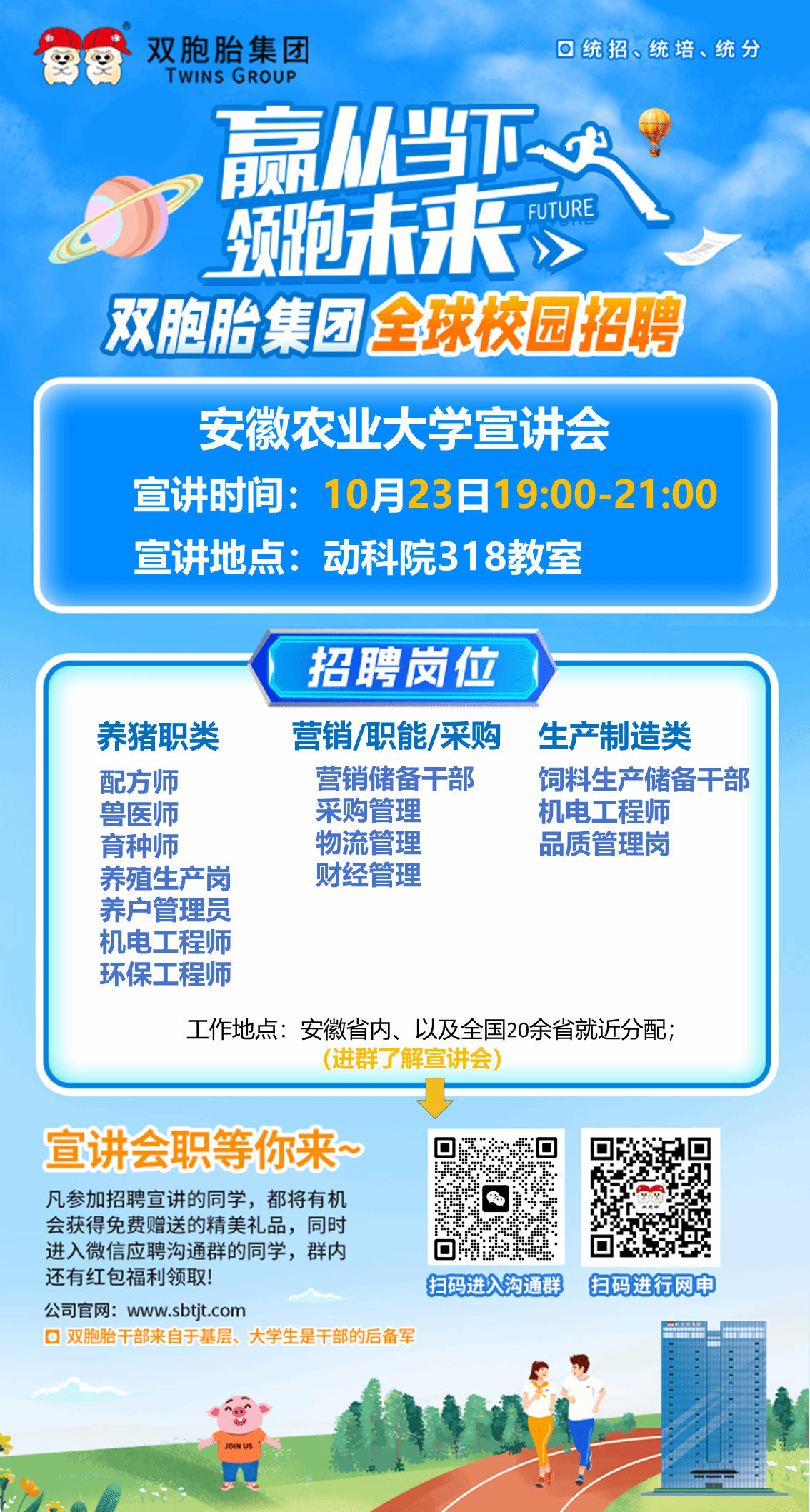 🎯热招岗位:兽医/育种师、配方师、养殖生产岗、养户管理员、机电工程师、饲料生产储备干部、营销储备干部、环保工程师、财经等