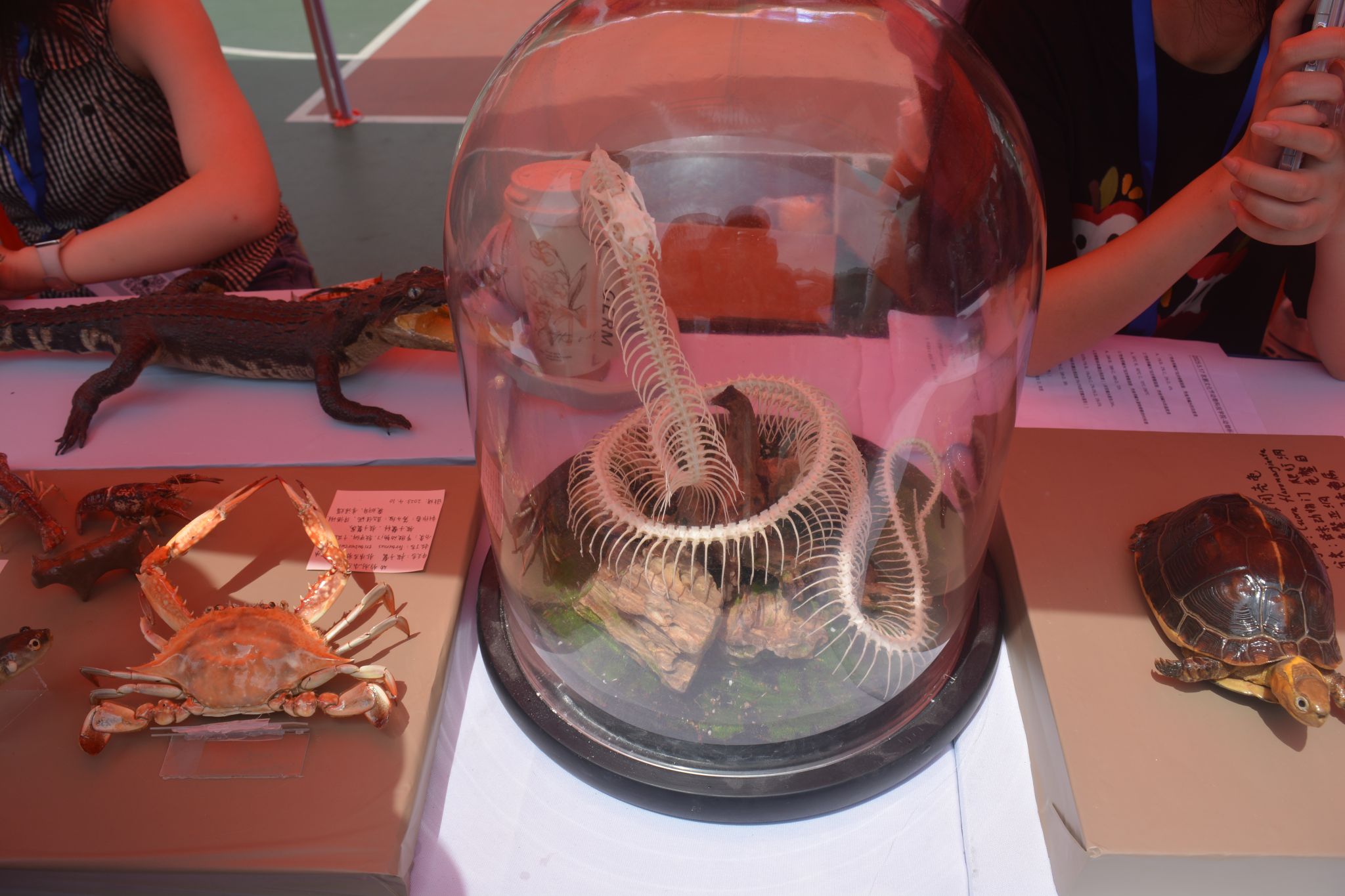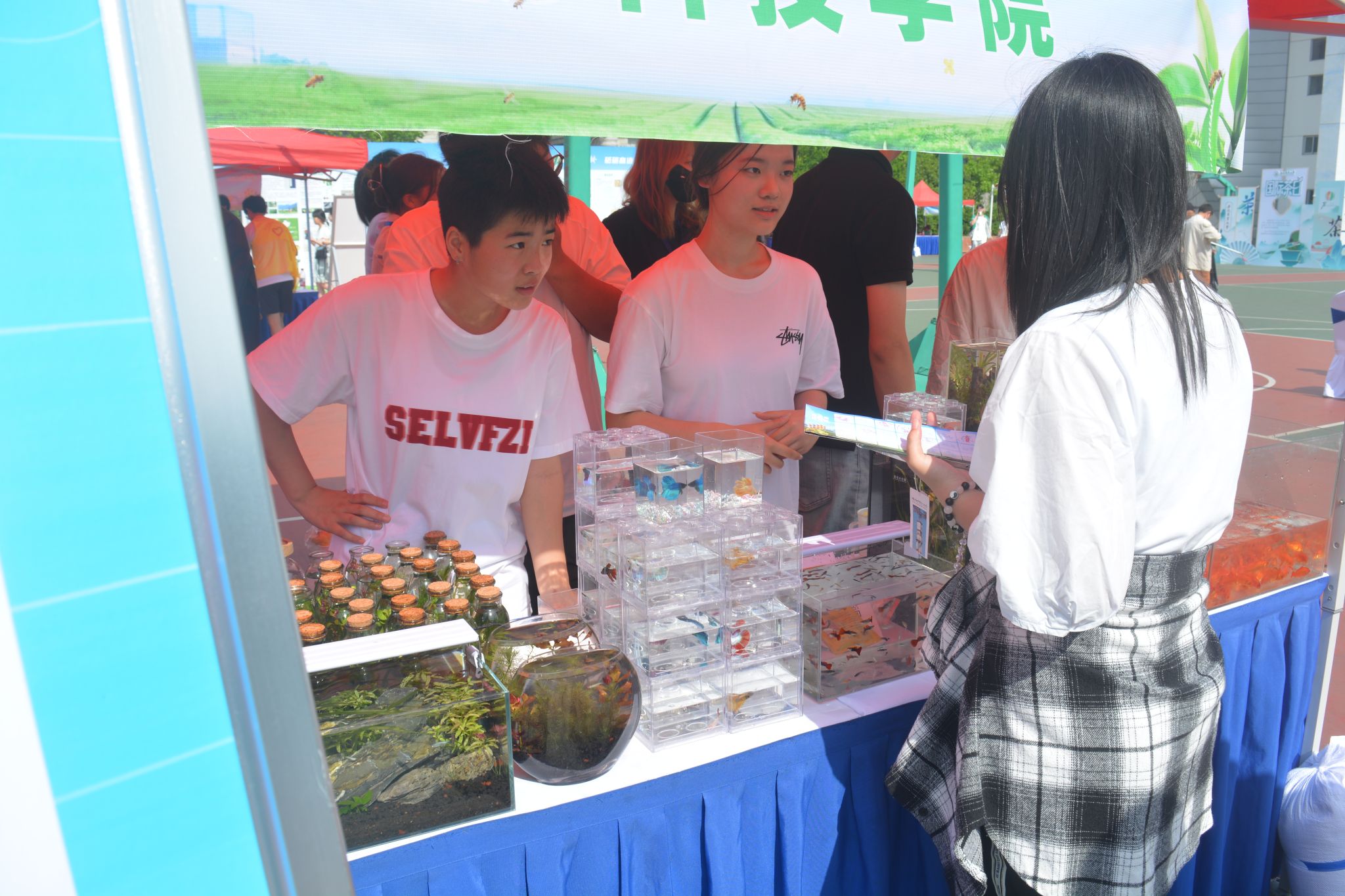 传统农耕展区亮点纷呈。扬子鳄、猫头鹰、河豚等珍稀动物标本以及清江鱼、斗鱼、孔雀鱼等观赏鱼类有序陈列,吸引了众多师生驻足。现场同步开展了小动物与鱼类知识有奖问答及“捞金鱼”趣味互动活动,参与者不仅增长了知识,加深了对动物的了解,更有机会赢取动物模型积木或活体金鱼作为奖品,现场气氛热烈。