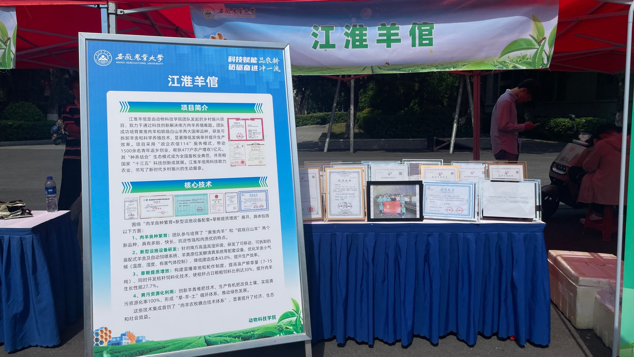 科技创新成果展区重点展示的三大项目成为亮点。“肉用山羊新品种——皖临白山羊”展示特色育种成果。“江淮羊倌智能养殖系统”体现智慧养殖技术应用。“育鸭先锋——国审肉鸭‘芯’力量”聚焦种业创新。这些项目生动展现了科技在现代农业发展和乡村振兴中的蓬勃活力与显著成效。