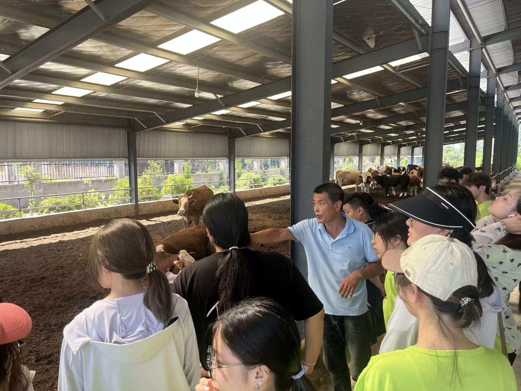 在天缘牧业,实践团重点考察了安徽省首个自主培育的大家畜新品种——皖临白山羊。其优异的生产性能、繁殖力和适应性,使之成为推动南方农区肉羊产业发展的关键力量。团队成员详细了解了其繁育技术、科学饲养模式及市场前景。在拾分味道(食品加工)和学伟牧业的参访中,现代化的生产线、智能化的养殖管理系统和先进的管理理念,让成员们直观感受到农业科技与现代工业的深度融合,深刻认识到产业升级对乡村振兴的驱动作用。